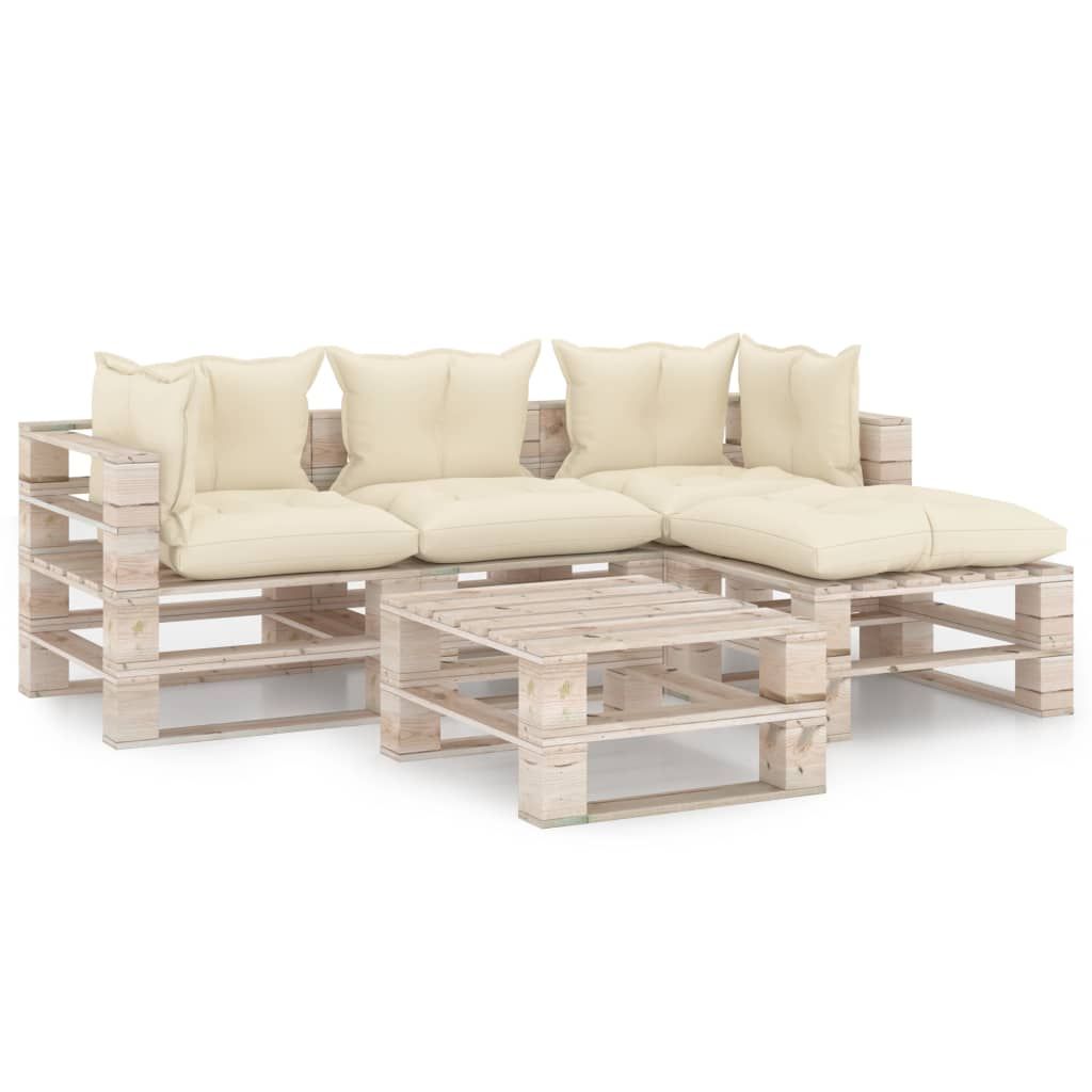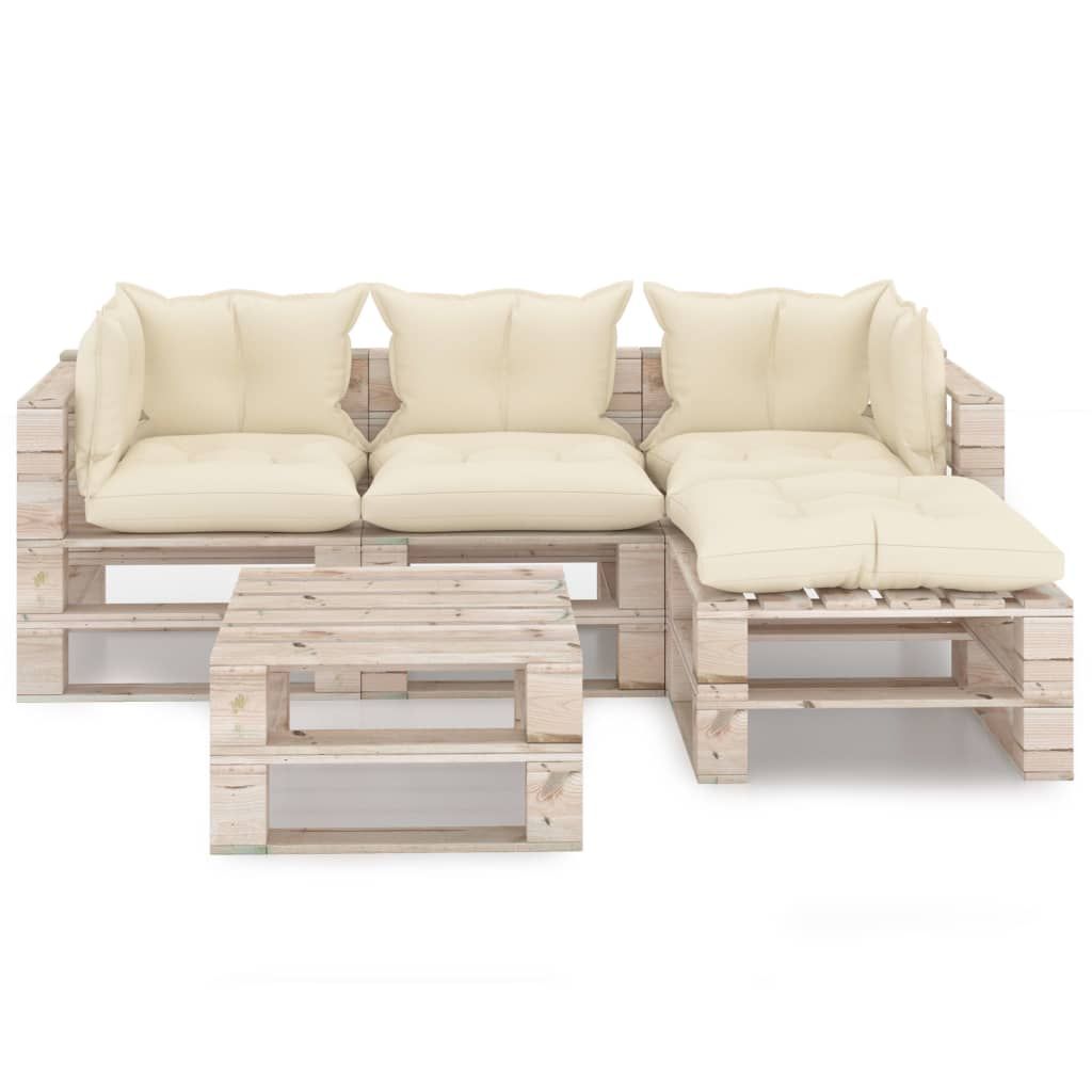 5-cz. zestaw mebli ogrodowych z palet, z poduszkami, sosna