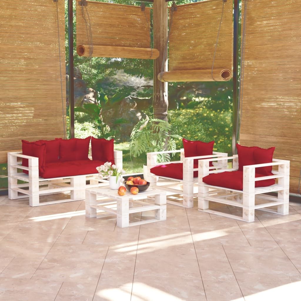 5-cz. zestaw mebli ogrodowych z palet, z poduszkami, sosna
