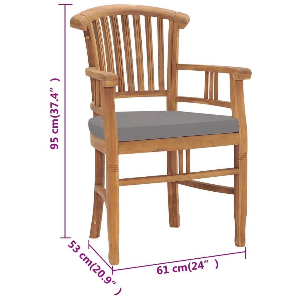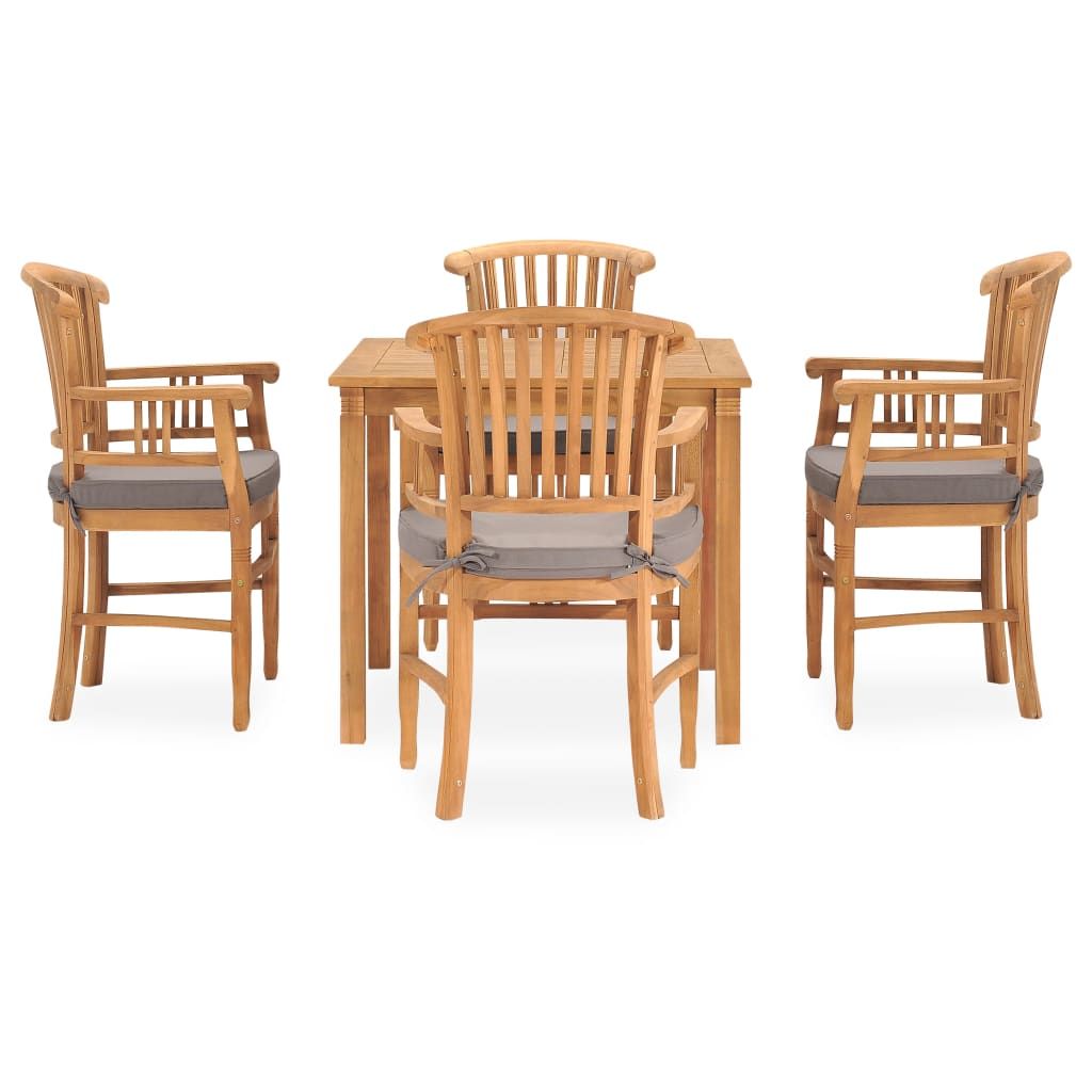 Zestaw mebli ogrodowych z litego drewna tekowego wniesie odrobinę wyrafinowania oraz elegancji do Twojej przestrzeni na zewnątrz. Meble wykonano z niezwykle wytrzymałego drewna tekowego, które było sezonowane, suszone komorowo i drobno szlifowane, aby nadać mu bardzo gładki wygląd. Tek słynie ze swojej wyjątkowej wytrzymałości i odporności na warunki atmosferyczne, dzięki czemu jest o wiele bardziej odpowiedni do produkcji mebli ogrodowych niż jakiekolwiek inny rodzaj drewna. Drewno tekowe to idealny wybór, jeśli chcesz kupić trwałe meble do ogrodu. Grubo wypełnione poduszki zapewniają większy komfort podczas spożywania posiłków i relaksu. Ich zapinane na suwaki poszewki można łatwo zdjąć i wyprać.