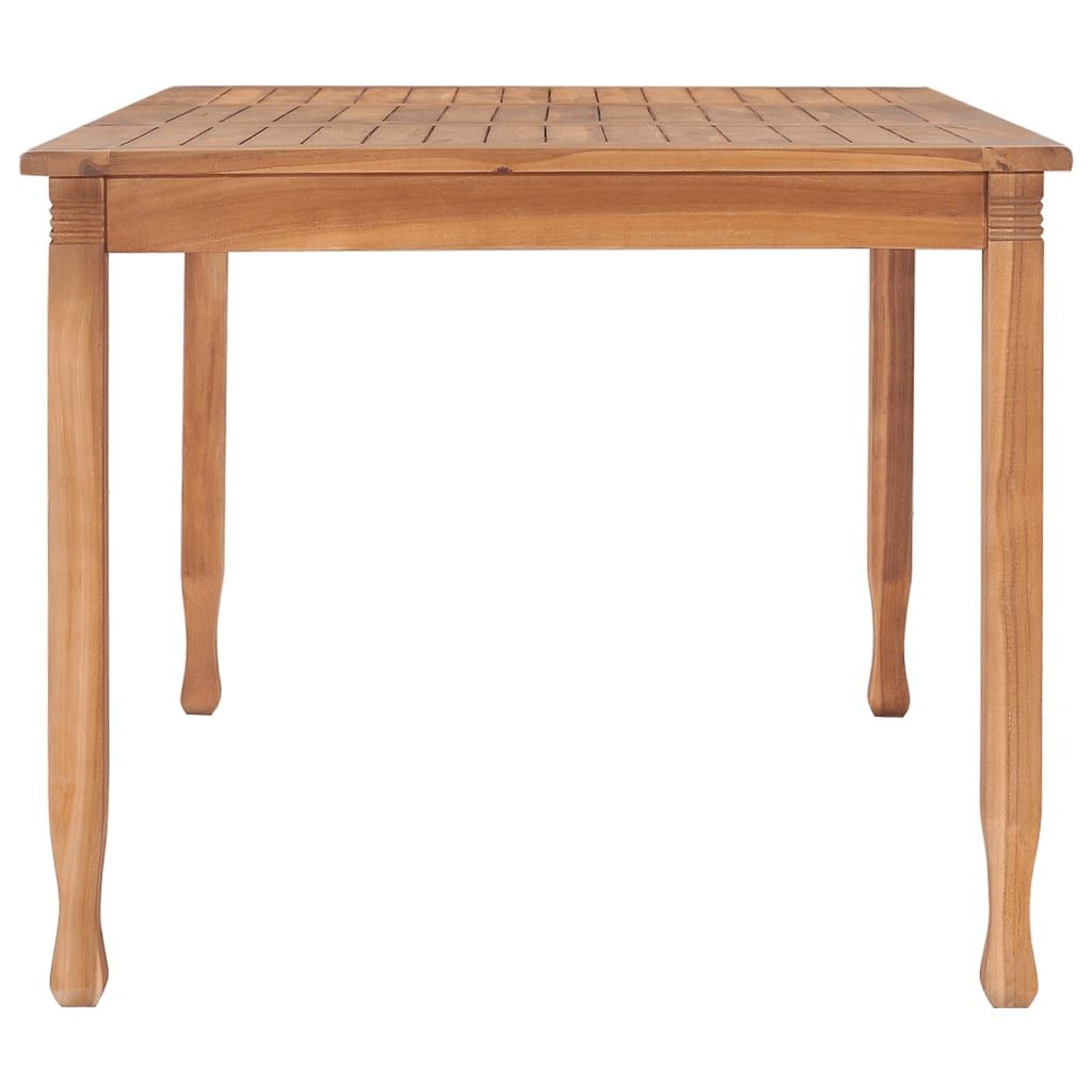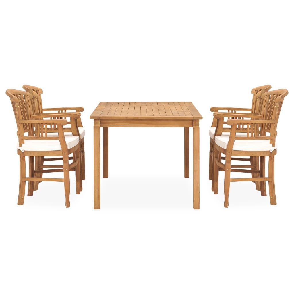 Zestaw mebli ogrodowych z litego drewna tekowego wniesie odrobinę wyrafinowania oraz elegancji do Twojej przestrzeni na zewnątrz. Meble wykonano z niezwykle wytrzymałego drewna tekowego, które było sezonowane, suszone komorowo i drobno szlifowane, aby nadać mu bardzo gładki wygląd. Tek słynie ze swojej wyjątkowej wytrzymałości i odporności na warunki atmosferyczne, dzięki czemu jest o wiele bardziej odpowiedni do produkcji mebli ogrodowych niż jakiekolwiek inny rodzaj drewna. Drewno tekowe to idealny wybór, jeśli chcesz kupić trwałe meble do ogrodu. Grubo wypełnione poduszki zapewniają większy komfort podczas spożywania posiłków i relaksu. Ich zapinane na suwaki poszewki można łatwo zdjąć i wyprać.