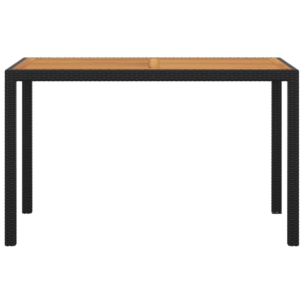Zestaw mebli polirattanowych o eleganckim i współczesnym designie będzie znakomity do zaserwowania posiłku na świeżym powietrzu lub do relaksu w ogrodzie. Do użytku na zewnątrz: wykonany z odpornego na czynniki pogodowe i wodę rattanu PE zestaw ogrodowy jest łatwy do czyszczenia, wytrzymały i odpowiedni do codziennego użytkowania. Materiał wysokiej jakości: malowana proszkowo rama ze stali sprawia, że stół i krzesła są solidne i trwałe. Blat wykonany jest z litego drewna akacjowego z naturalnym wykończeniem olejowym. Drewno to jest odporne na warunki atmosferyczne i wodę oraz niezwykle trwałe. Grube, miękkie, wypełnione gąbką poduszki na siedziska i oparcia zapewniają większy komfort siedzenia. Zdejmowane poszewki, które można prać, wyposażone zostały w praktyczne zamki.Przestawna konstrukcja: możesz opuścić oparcia i wsunąć krzesła pod stół, aby zaoszczędzić cenne miejsce, gdy zestaw nie jest używany. Dzięki lekkości wszystkie elementy można łatwo przestawiać. Uwaga:Aby przedłużyć żywotność mebli ogrodowych, zalecamy zabezpieczenie ich wodoodpornym pokrowcem.
