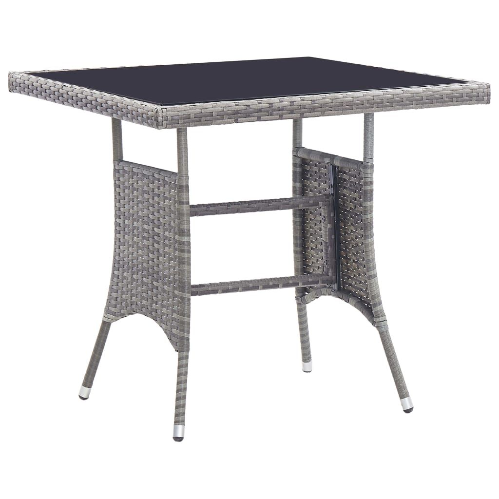 Opis produktu: Elegancki zestaw mebli polirattanowych będzie przyciągał uwagę w ogrodzie, na tarasie lub patio. Zestaw wykonany został z odpornego na czynniki pogodowe i wodę rattanu PE oraz szkła na blacie. Jest łatwy do czyszczenia, mocny i odpowiedni do codziennego użytkowania. Stalowa rama sprawia, że stół i krzesła są stabilne i trwałe. Dzięki lekkiej konstrukcji wszystkie elementy można łatwo przestawiać. Grube, zdejmowane poduszki na siedziska są wyjątkowo wygodne. Przesyłka zawiera: 1 stół z blatem ze szkła, 4 krzesła i 4 zdejmowane poduszki. Uwaga: zalecamy zabezpieczenie zestawu na czas deszczu, śniegu i mrozu.