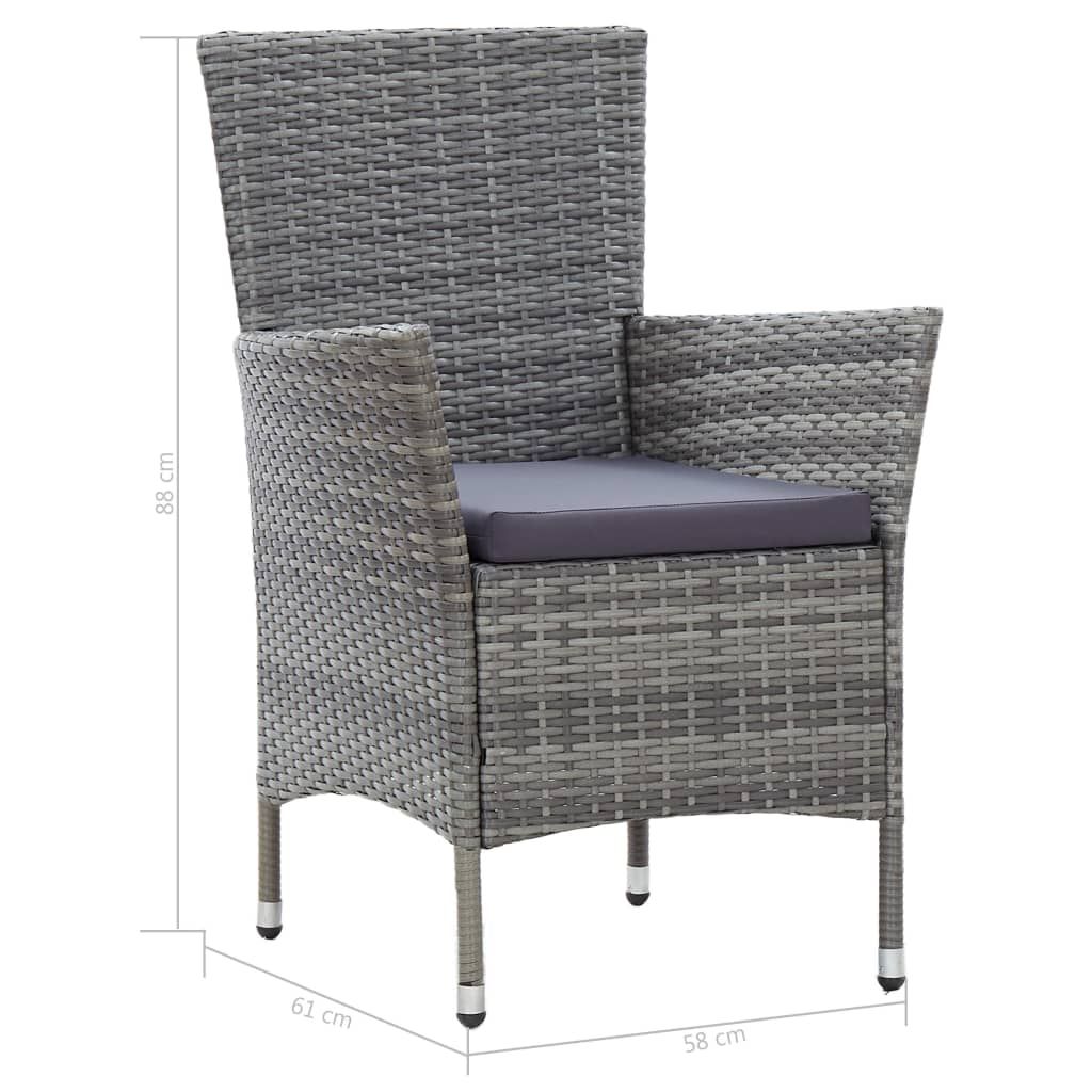 Wygodny zestaw mebli do ogrodu jest doskonałym połączeniem stylu i funkcjonalności oraz stanie się głównym punktem w Twojej przestrzeni zewnętrznej. Dzięki zastosowaniu odpornego na działanie wody rattanu PE zestaw mebli jest łatwy w utrzymaniu w czystości, trwały i odpowiedni do codziennego użytkowania. Malowane proszkowo, stalowe ramy zapewniają stabilność i trwałość. W skład przesyłki wchodzi stół z blatem z drewna akacjowego i pasujące do niego, eleganckie krzesła. Miękkie, zdejmowane poduszki na siedziska z wypełnieniem z pianki zapewniają komfort siedzenia. Poliestrowe powłoczki można z łatwością zdjąć i wyprać. Zestaw ten jest łatwy w montażu. Uwaga: na czas deszczu, śniegu lub mrozu zalecamy przykryć meble, aby zapewnić ich dłuższą trwałość.