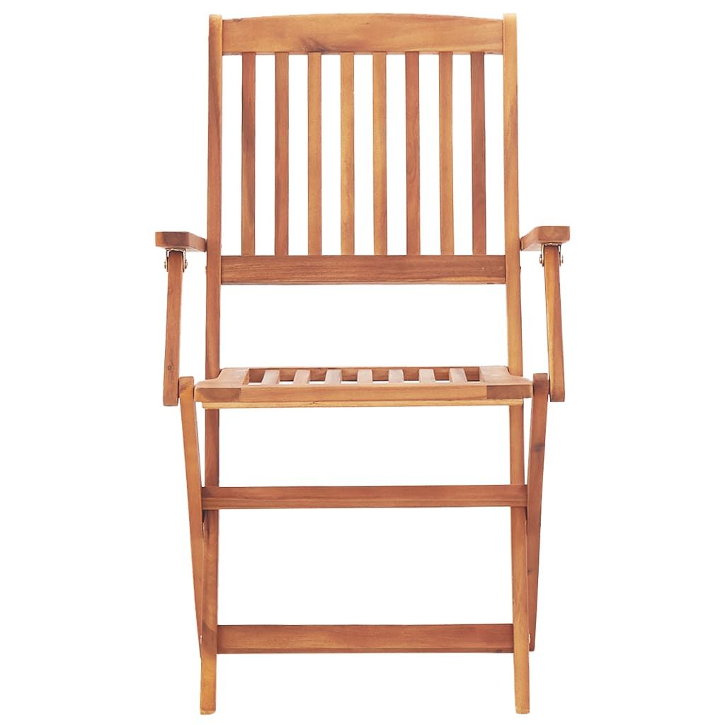 Stylowy i nowoczesny zestaw mebli obejmuje 1 prostokątny, składany stół i 4 składane krzesła. Doda on odrobinę luksusu do każdego posiłku i stanie się centralnym punktem Twojego ogrodu, tarasu lub patio. Meble wykonane są z wysokiej jakości, litego drewna akacjowego - twardego drewna tropikalnego, które jest odporne na warunki atmosferyczne oraz bardzo trwałe. Olejowana powierzchnia jest łatwa do czyszczenia, wystarczy użyć wilgotnej szmatki. Cały zestaw jest składany, co pozwala zaoszczędzić przestrzeń oraz ułatwia przechowywanie.