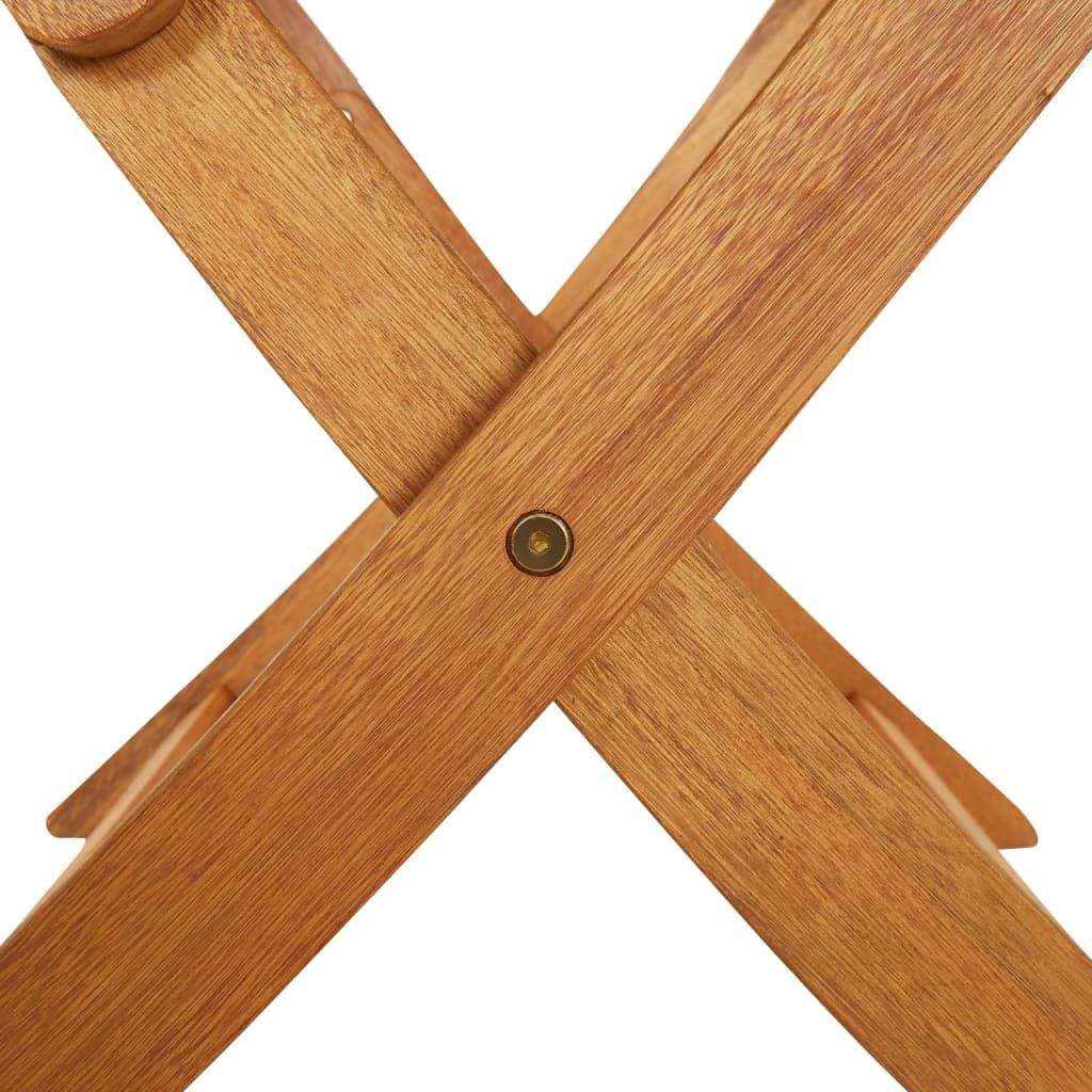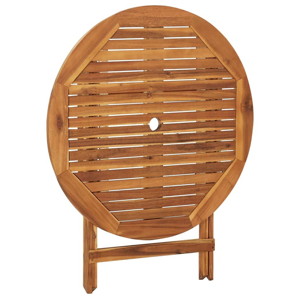 Usiądź do uroczej kolacji lub innego posiłku na świeżym powietrzu za sprawą tego składanego zestawu drewnianych mebli do ogrodu. Ten zestaw jadalniany wykonano z litego drewna akacjowego, dzięki czemu jest wytrzymały i stabilny. Powierzchnię wykończoną olejem można łatwo wyczyścić za pomocą wilgotnej ściereczki. Dodatkowo blat stolika ma pośrodku otwór na parasol. Stół i krzesła można złożyć, aby zaoszczędzić miejsce, gdy nie są używane.