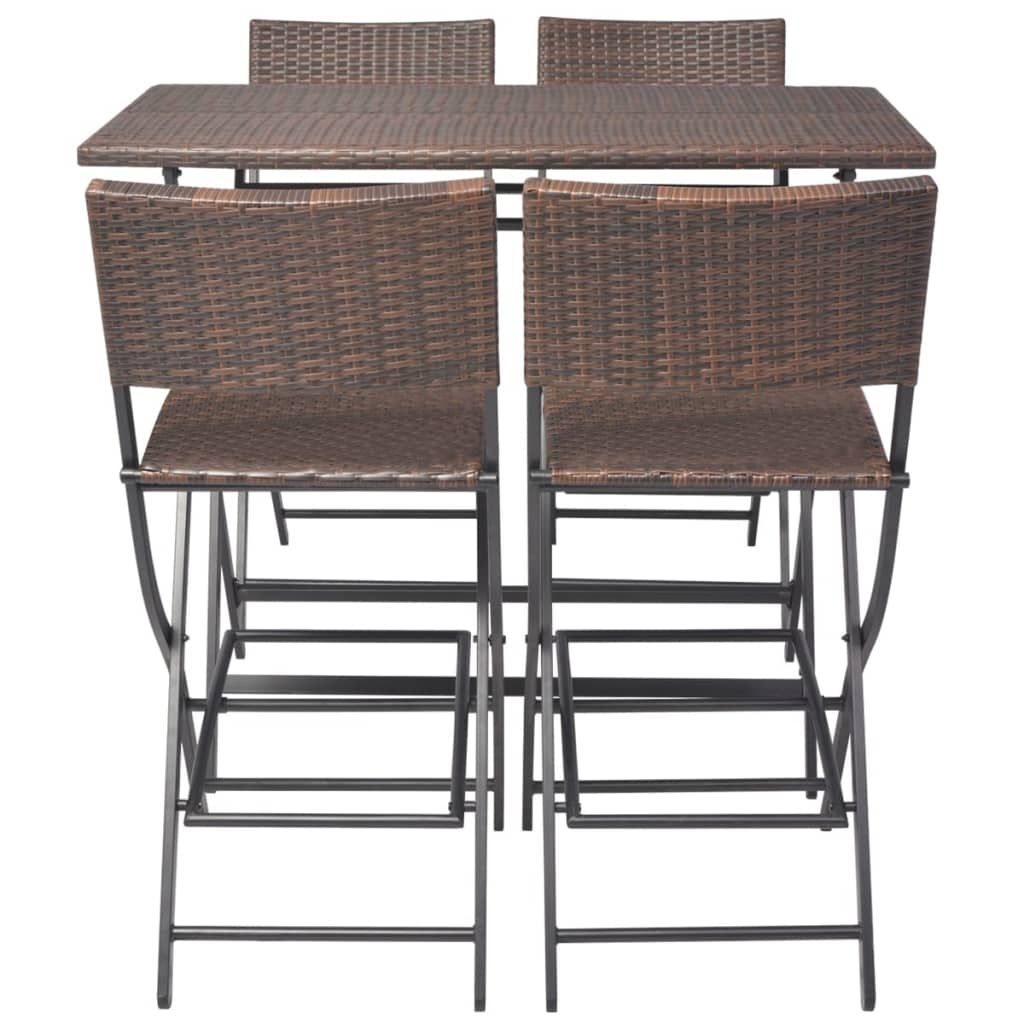 5-cz. zestaw składanych mebli ogrodowych, stal, rattan PE, brąz
