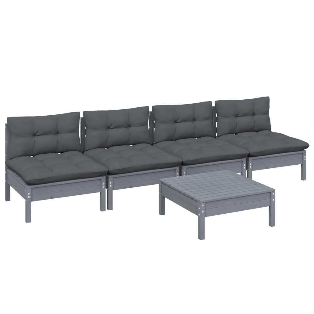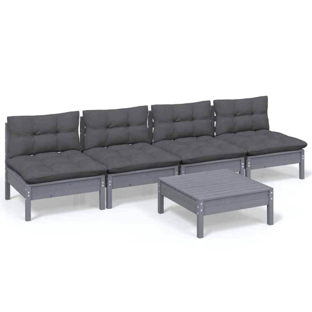 5-cz. zestaw wypoczynkowy do ogrodu, antracytowe poduszki, sosna