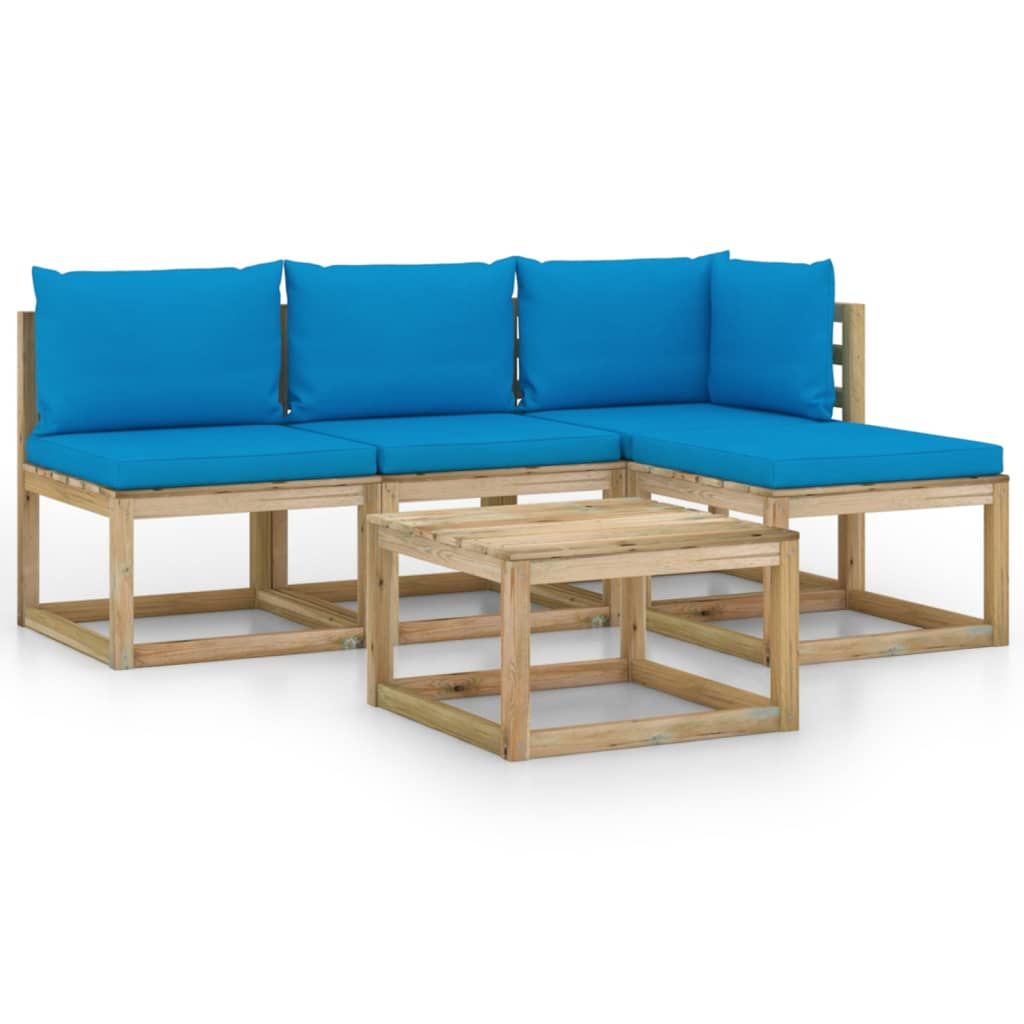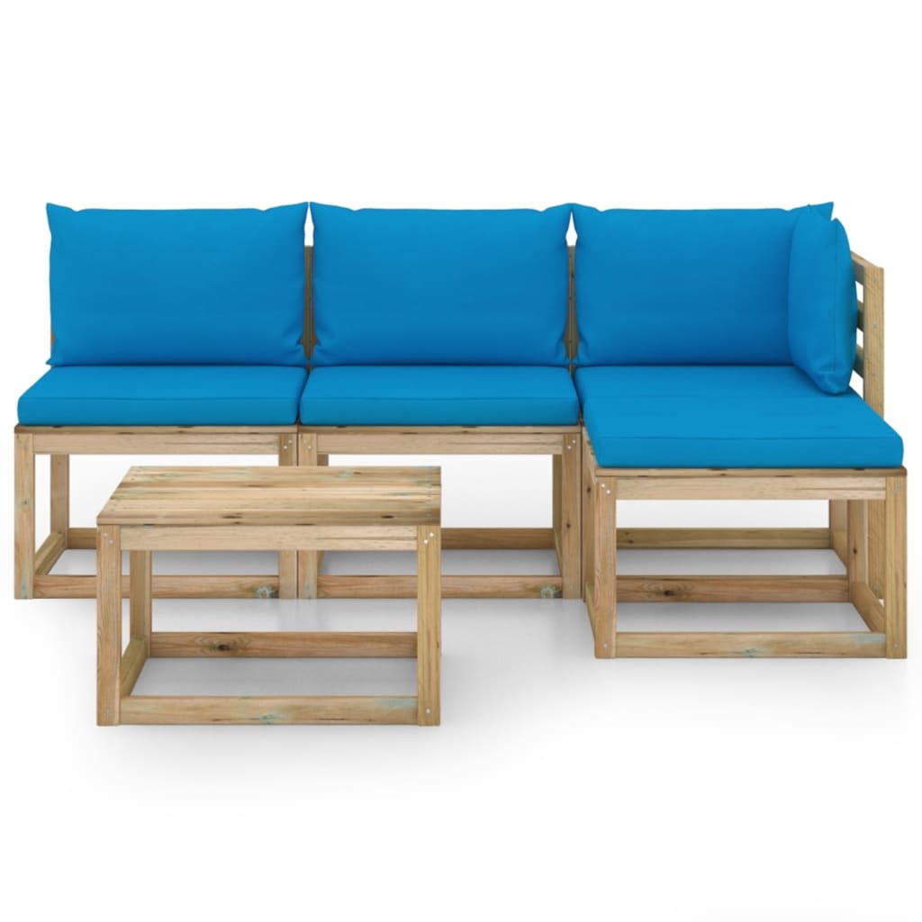 5-cz. zestaw wypoczynkowy do ogrodu, jasnoniebieskie poduszki
