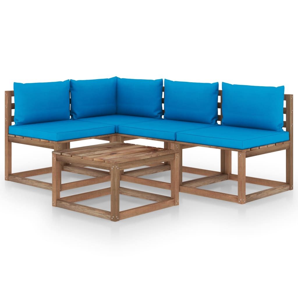 5-cz. zestaw wypoczynkowy do ogrodu, jasnoniebieskie poduszki