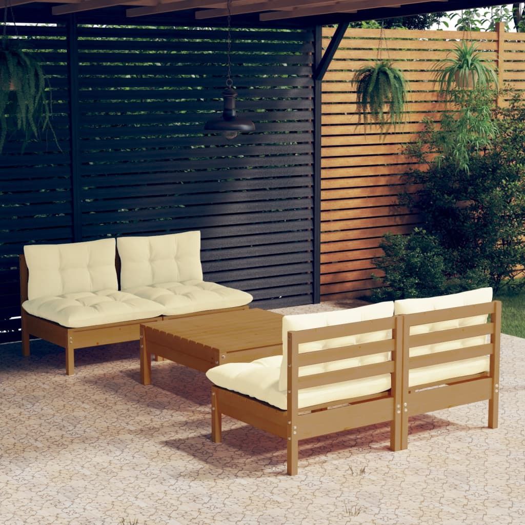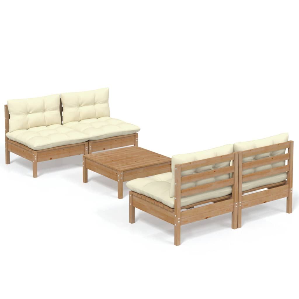 5-cz. zestaw wypoczynkowy do ogrodu, kremowe poduszki, sosnowy