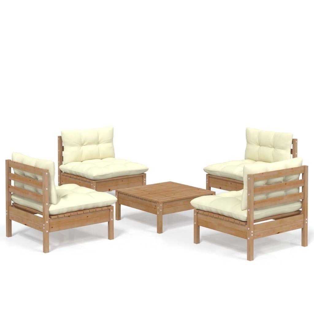 5-cz. zestaw wypoczynkowy do ogrodu, kremowe poduszki, sosnowy