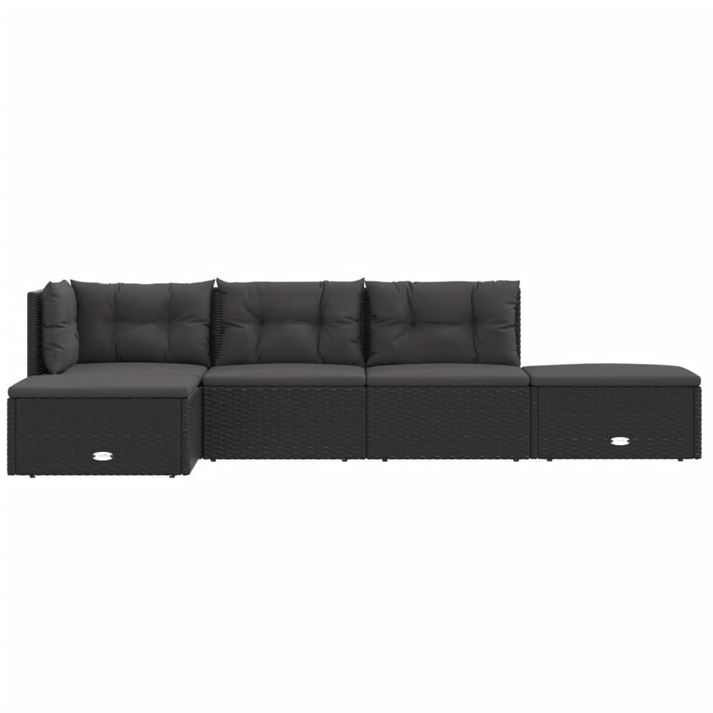 5-cz. zestaw wypoczynkowy do ogrodu, poduszki, czarny rattan PE