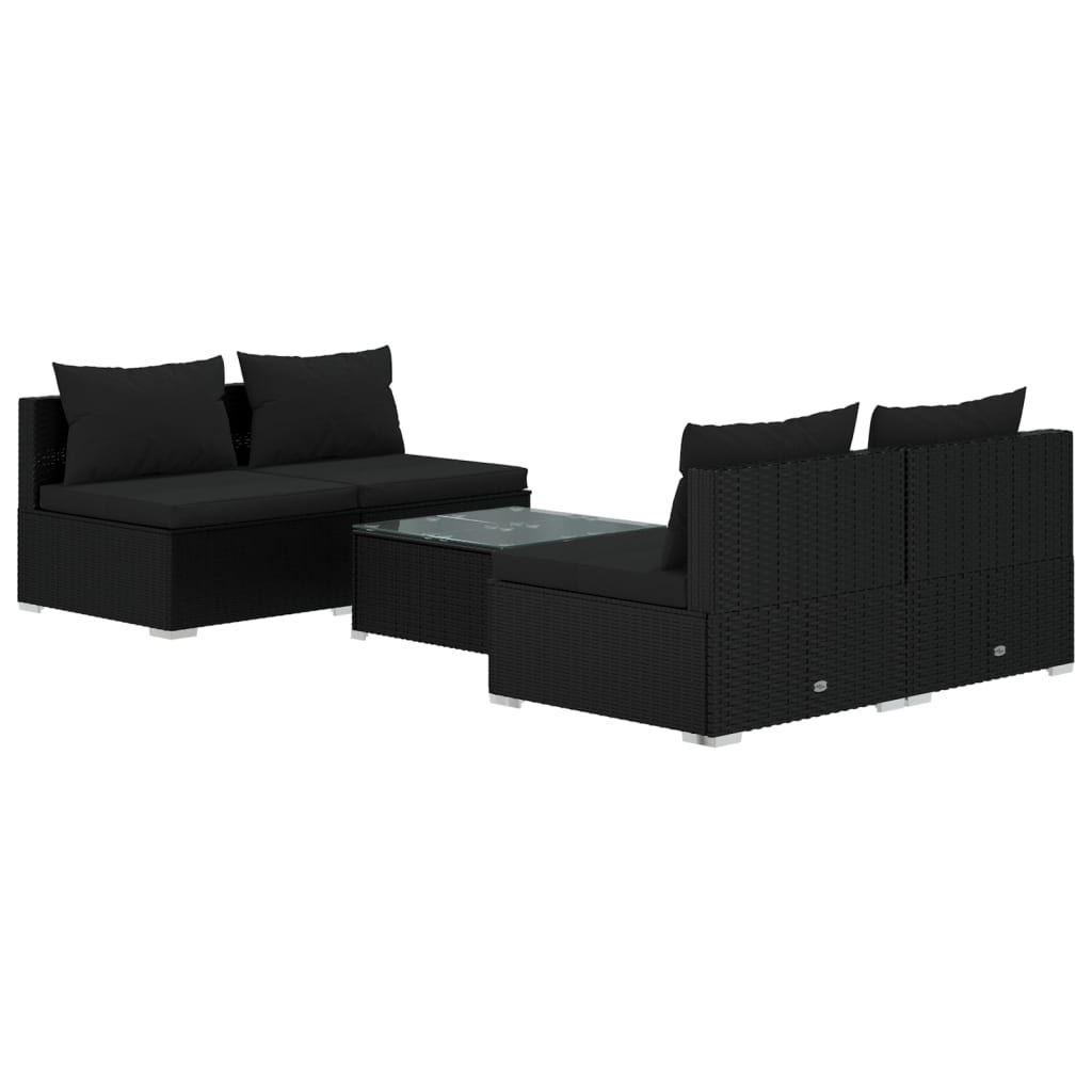 5-cz. zestaw wypoczynkowy do ogrodu, poduszki, czarny rattan PE