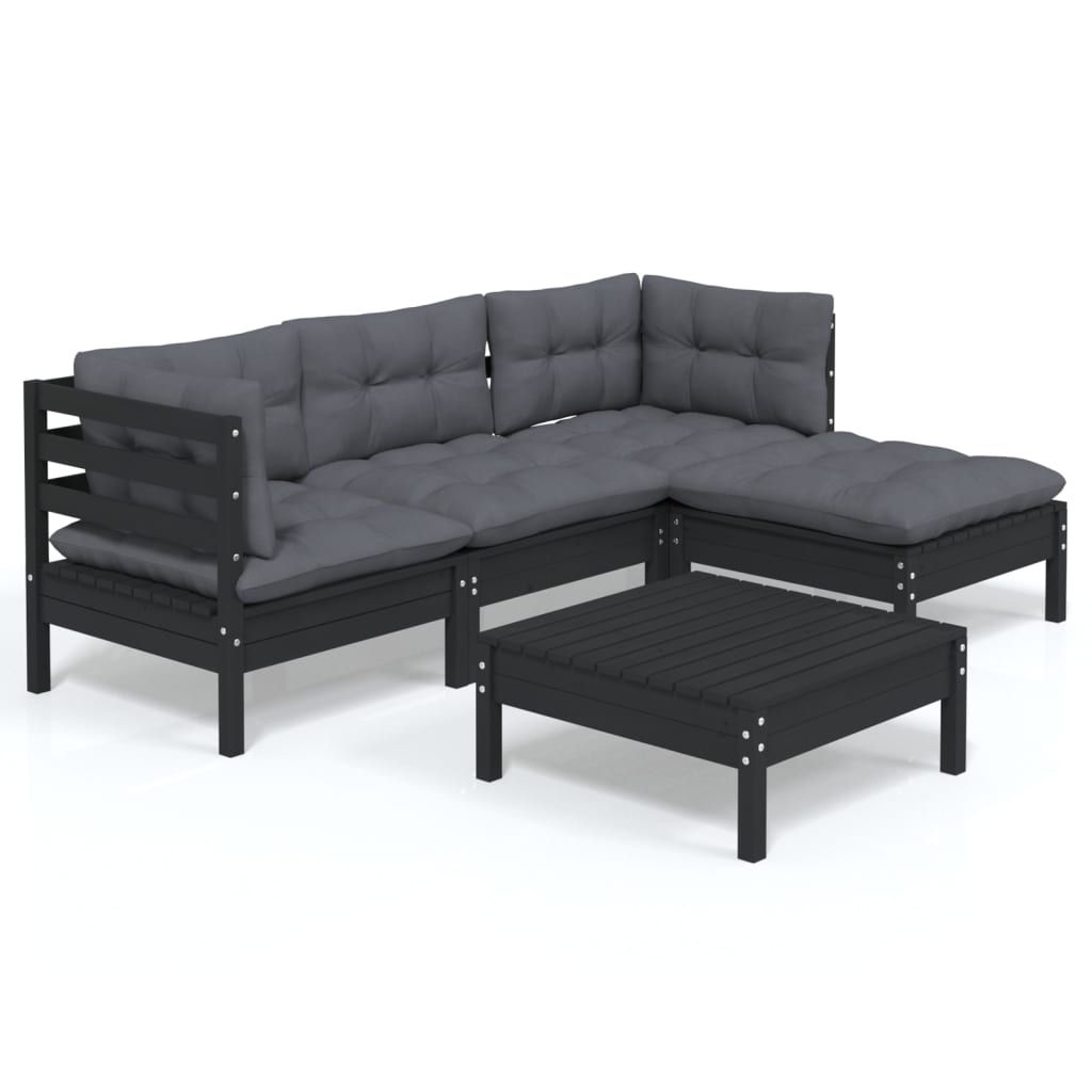 5-cz. zestaw wypoczynkowy do ogrodu, poduszki, czarny, sosnowy
