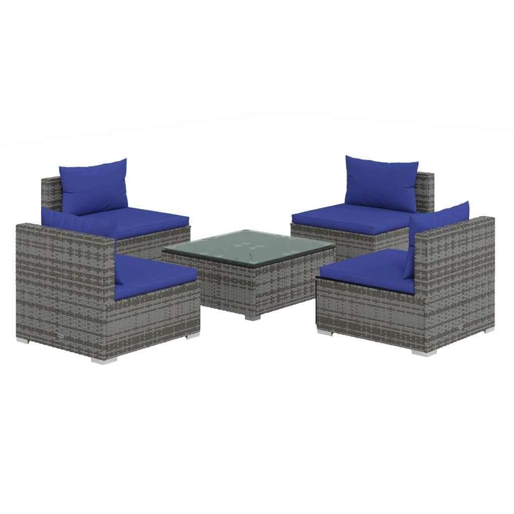 5-cz. zestaw wypoczynkowy do ogrodu, poduszki, rattan PE, szary
