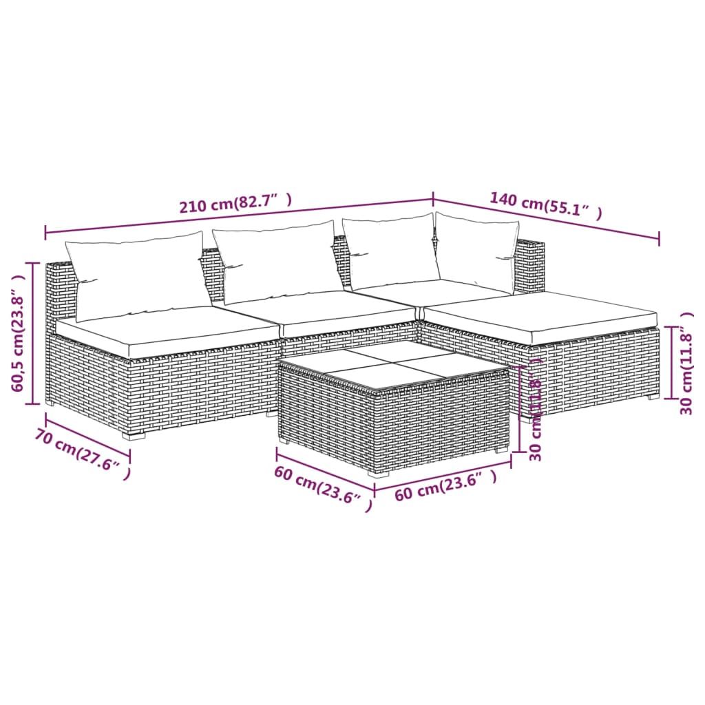 5-cz. zestaw wypoczynkowy do ogrodu, poduszki, rattan PE, szary