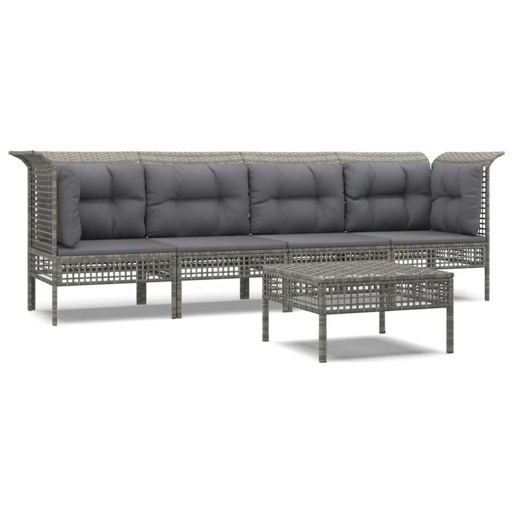 5-cz. zestaw wypoczynkowy do ogrodu, poduszki, szary, rattan PE
