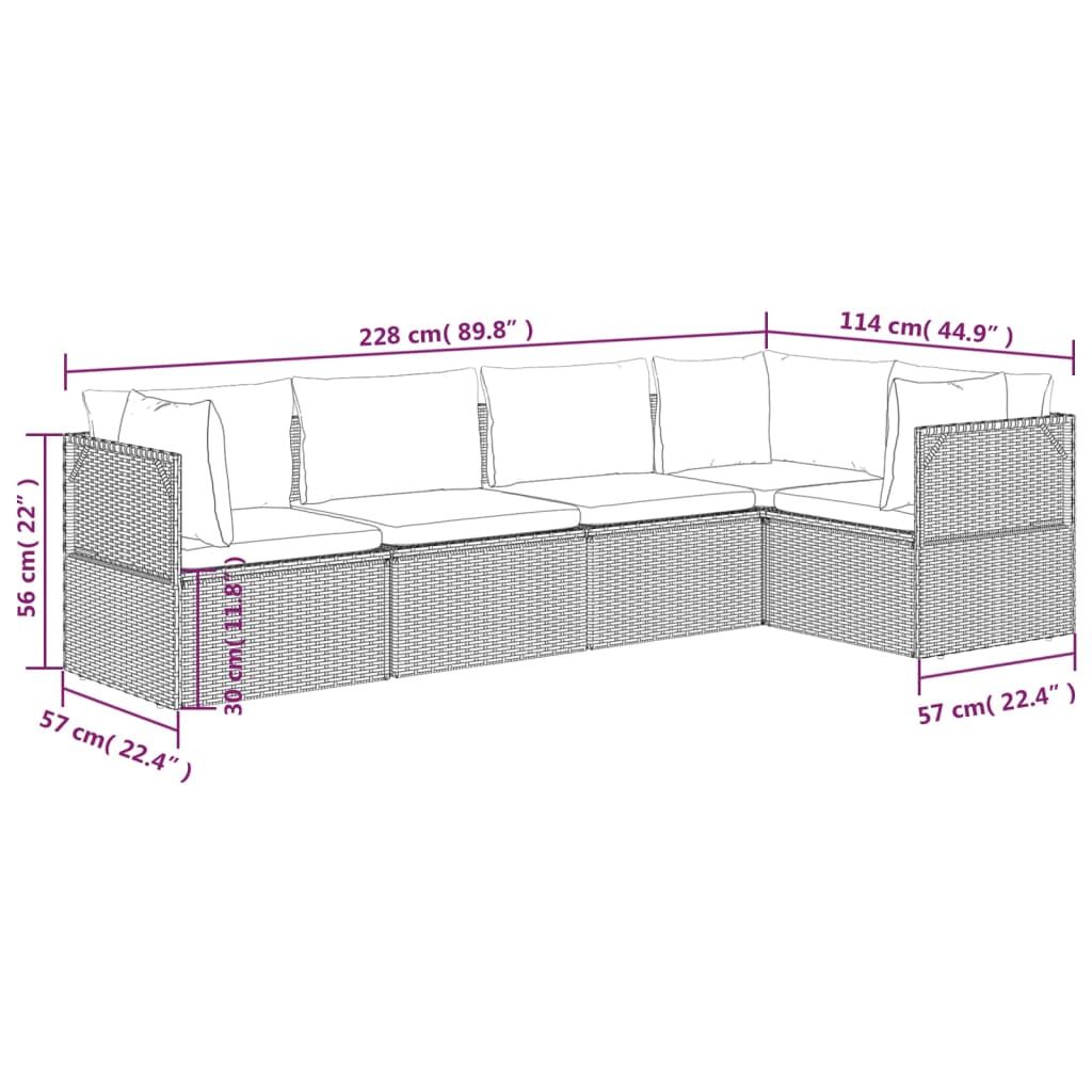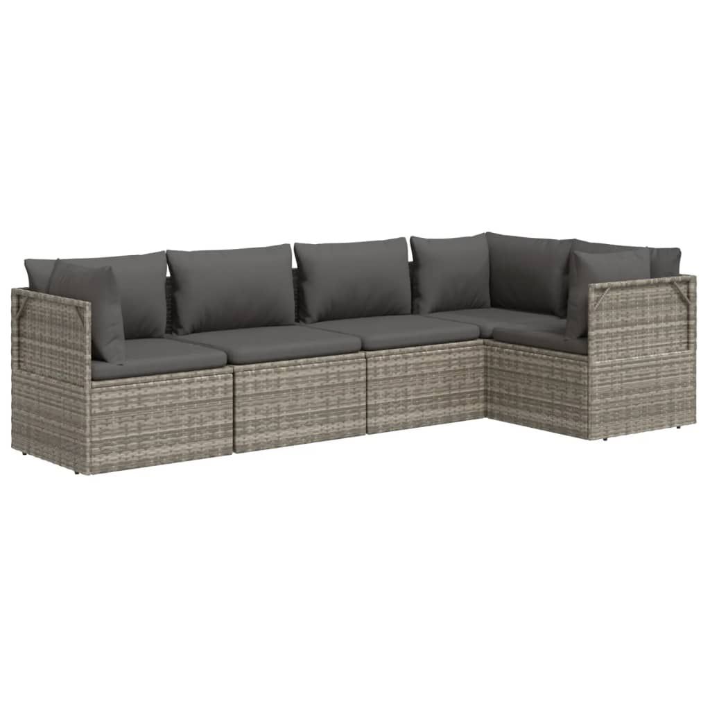5-cz. zestaw wypoczynkowy do ogrodu, poduszki, szary, rattan PE