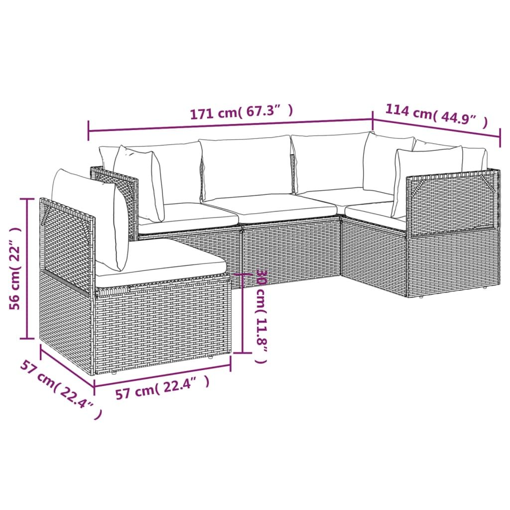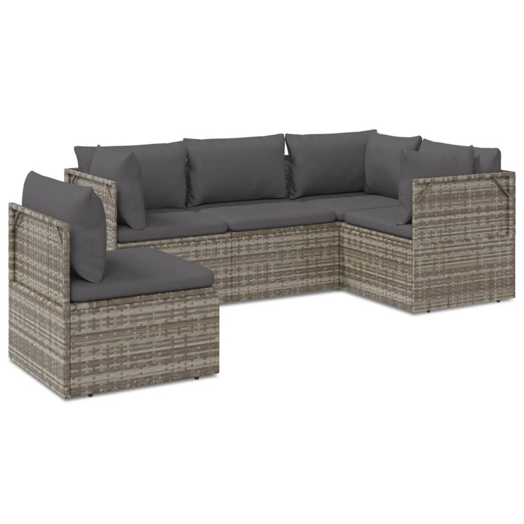 5-cz. zestaw wypoczynkowy do ogrodu, poduszki, szary, rattan PE