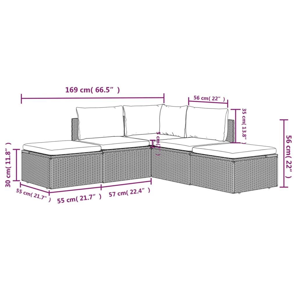 5-cz. zestaw wypoczynkowy do ogrodu, poduszki, szary, rattan PE