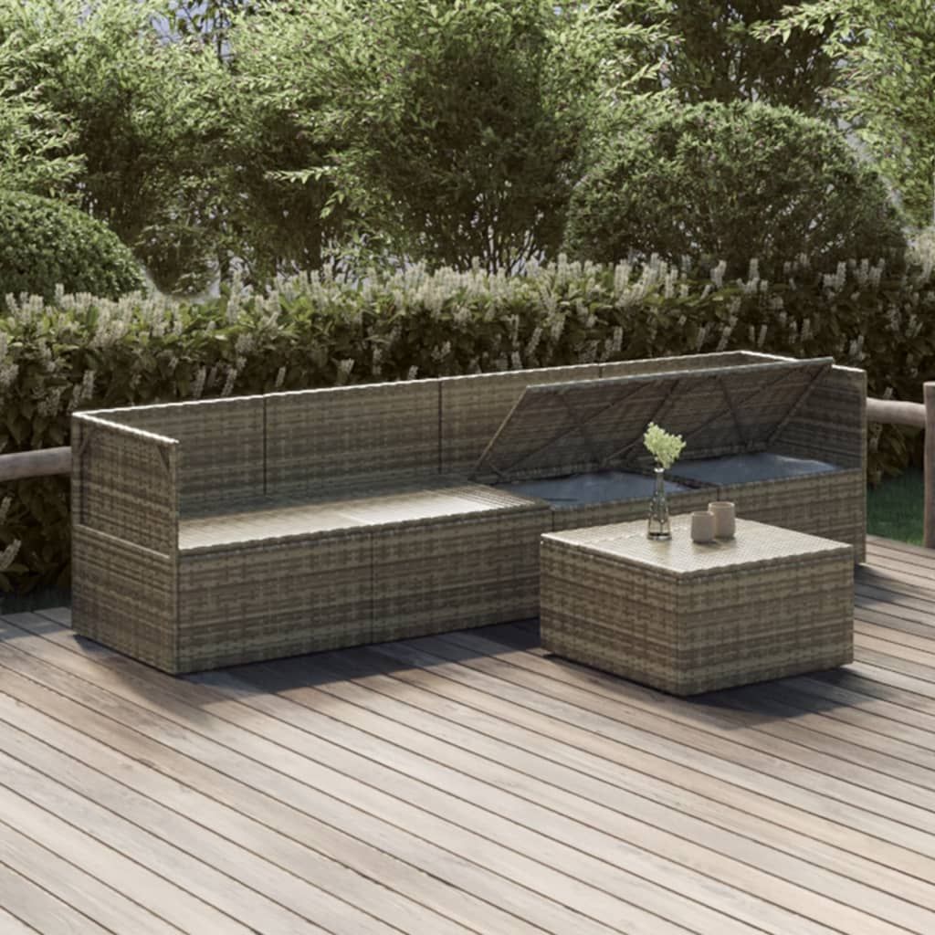 Opis produktu: Ten modny zestaw wypoczynkowy do ogrodu, o eleganckim i współczesnym wyglądzie, będzie znakomitym wyborem do zjedzenia posiłku lub relaksu na świeżym powietrzu. Trwały materiał: polirattan to materiał niezwykle trwały i odporny na różne czynniki pogodowe. Jest też mało wymagający w utrzymaniu. Stalowa rama: rama ze stali gwarantuje solidność i stabilność konstrukcji.Wygodne siedzisko: dla Twojej wygody do zestawu dołączono poduszki.Dużo miejsca do przechowywania: przestrzeń do przechowywania ułatwia uporządkowanie rzeczy. Sprawdzi się ono do przechowywania poduszek, koców, zabawek i innych przedmiotów.Wodoszczelna torba: wodoszczelna torba z pokrywą, zamkiem i zapięciem na rzep ochroni Twoje rzeczy przed wilgocią. Uwaga:Aby przedłużyć żywotność mebli ogrodowych, zalecamy zabezpieczenie ich wodoodpornym pokrowcem.Każdy produkt jest dostarczany wraz z instrukcją montażu dla ułatwienia tej czynności.