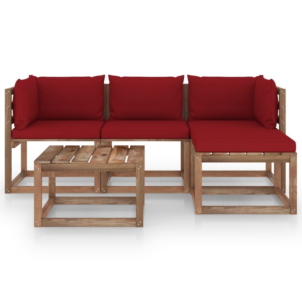 5-cz. zestaw wypoczynkowy do ogrodu, poduszki w kolorze wina