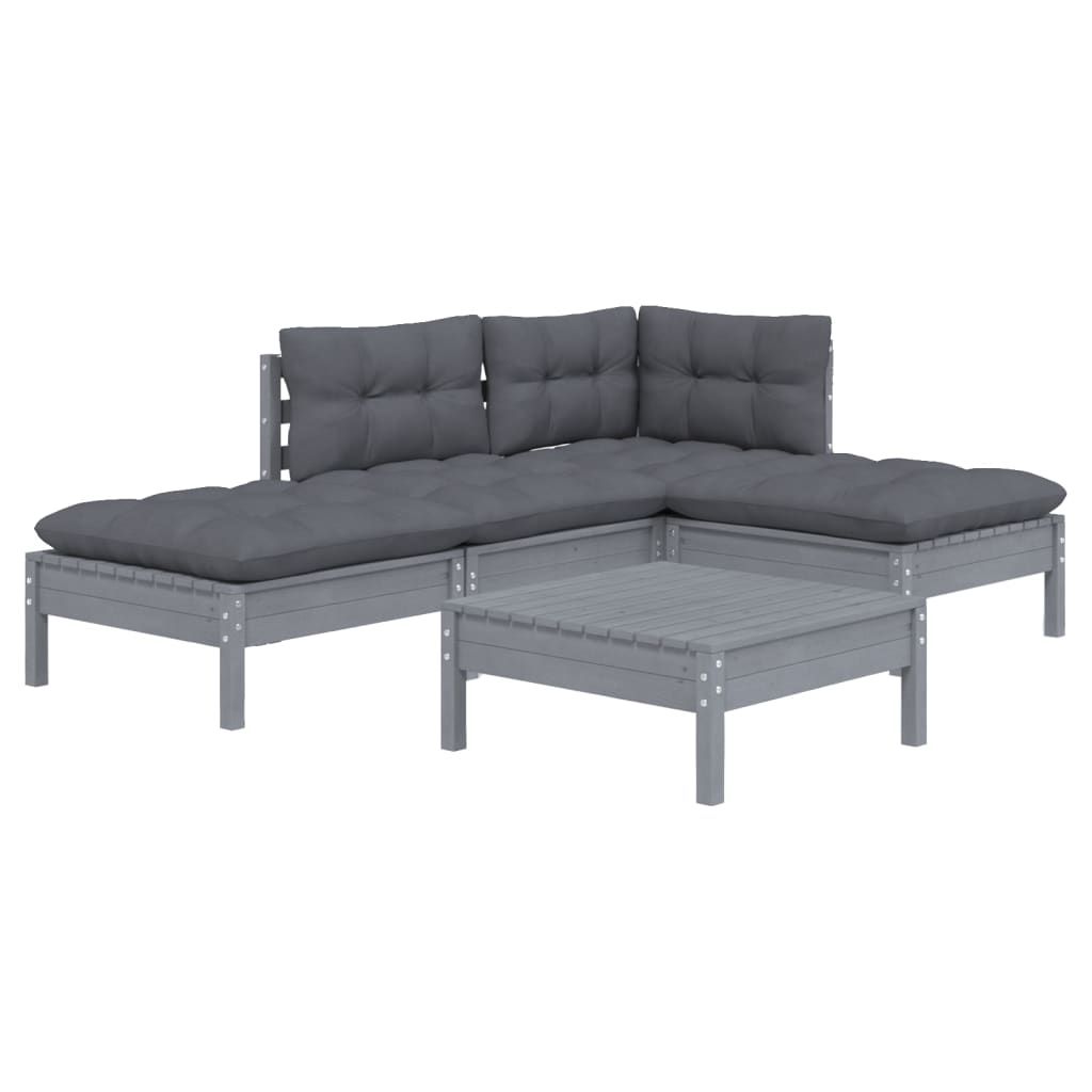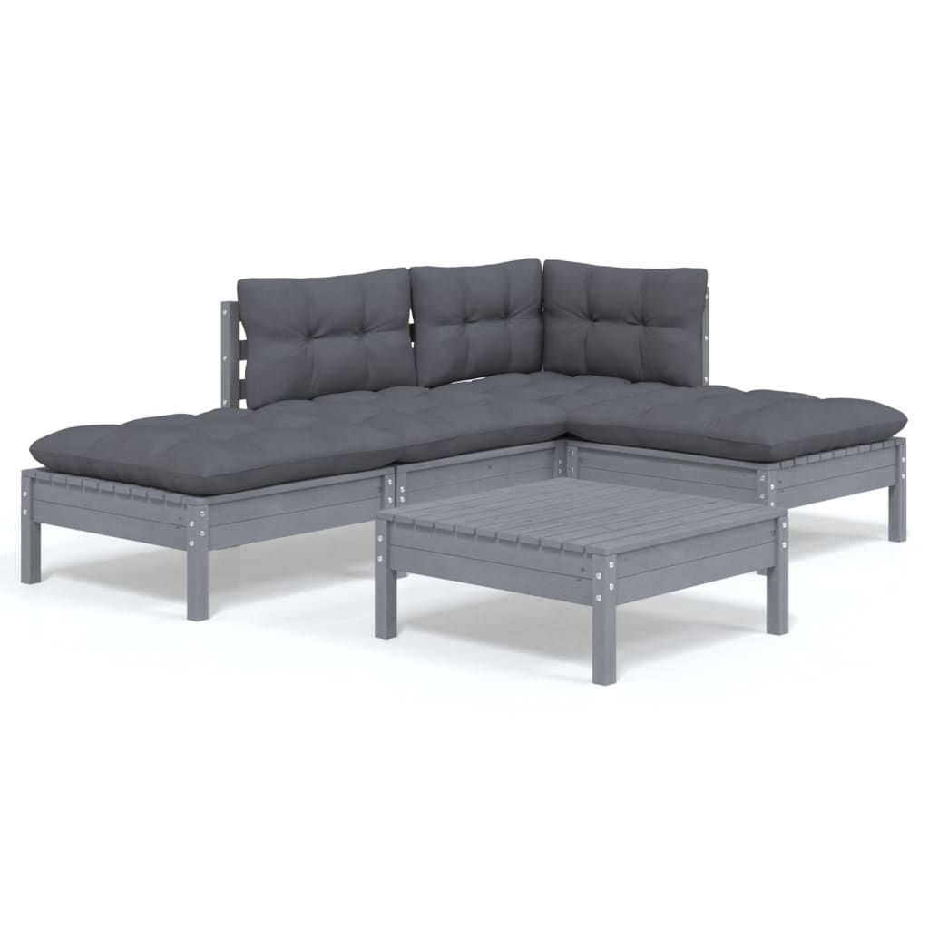 5-cz. zestaw wypoczynkowy do ogrodu, szare poduszki, sosnowy