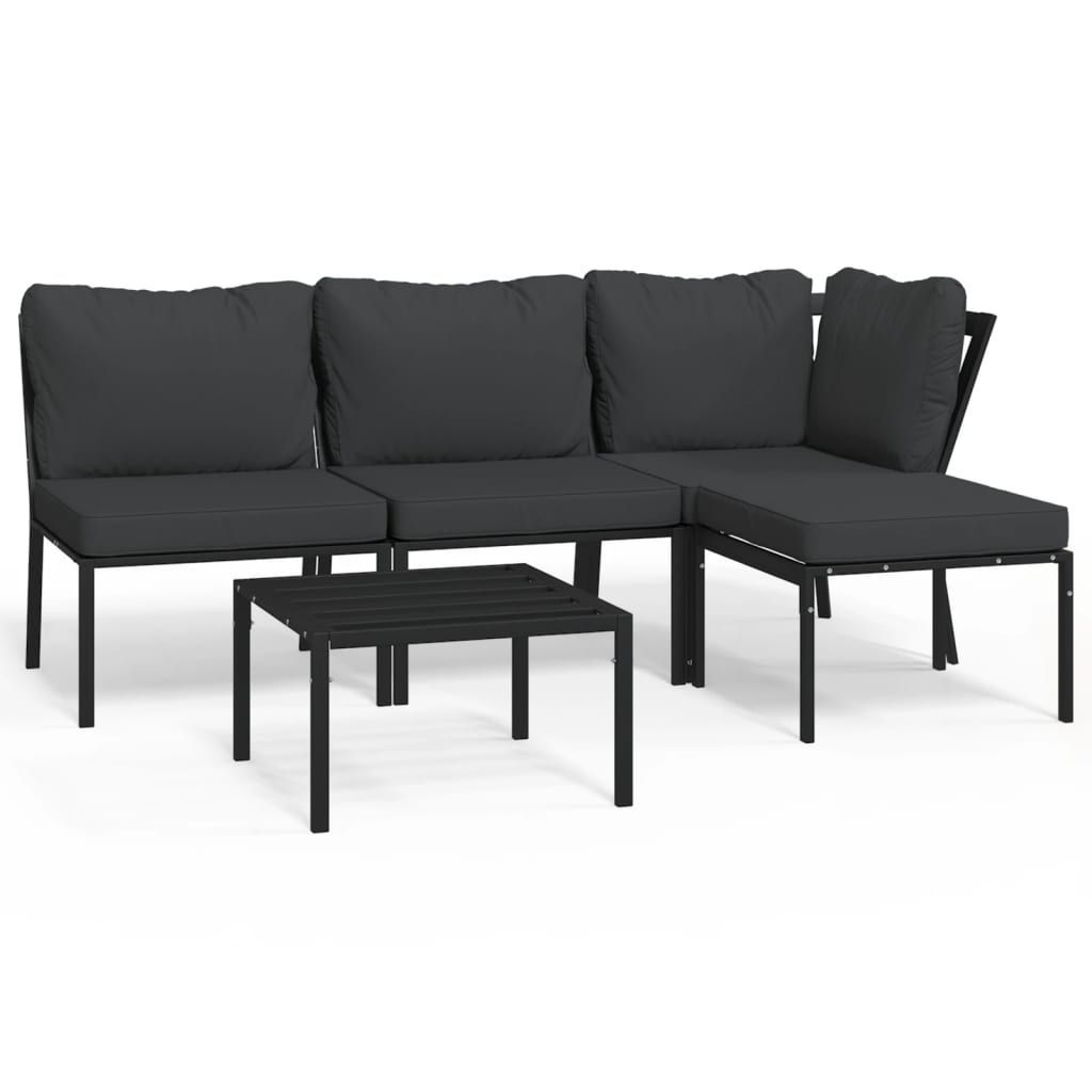 5-cz. zestaw wypoczynkowy do ogrodu, szare poduszki, stal