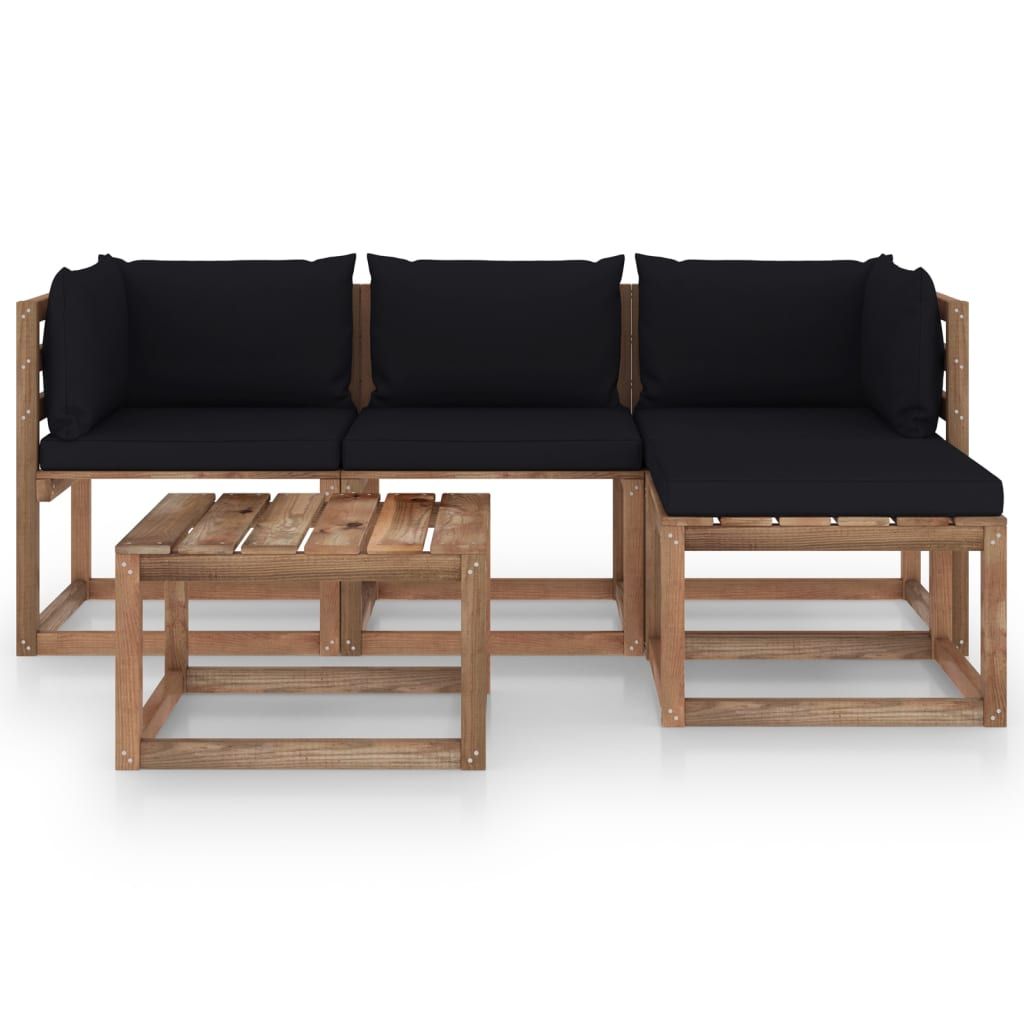 5-cz. zestaw wypoczynkowy do ogrodu, z czarnymi poduszkami