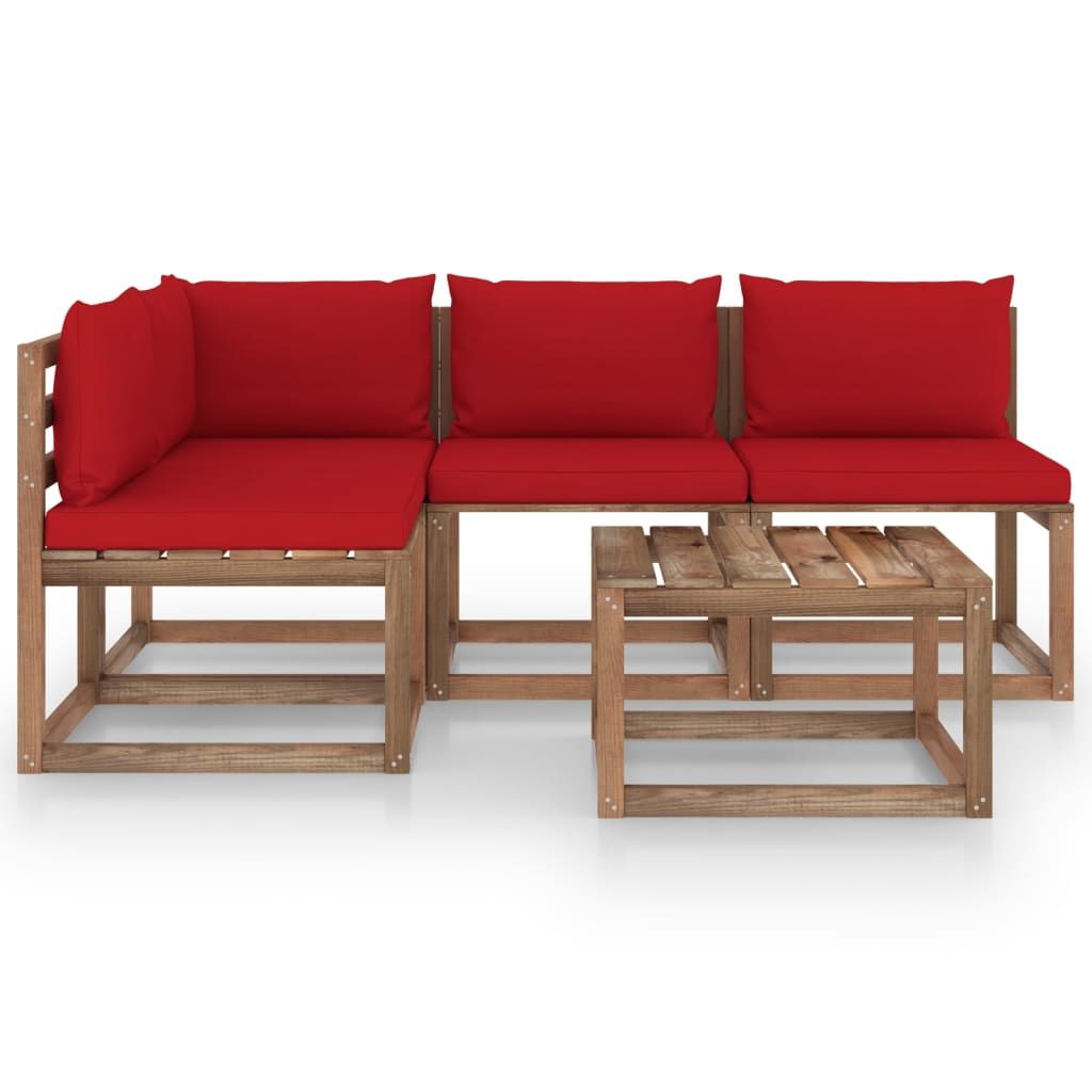 5-cz. zestaw wypoczynkowy do ogrodu z czerwonymi poduszkami
