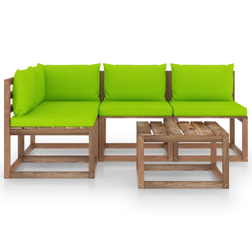 5-cz. zestaw wypoczynkowy do ogrodu z jasnozielonymi poduszkami