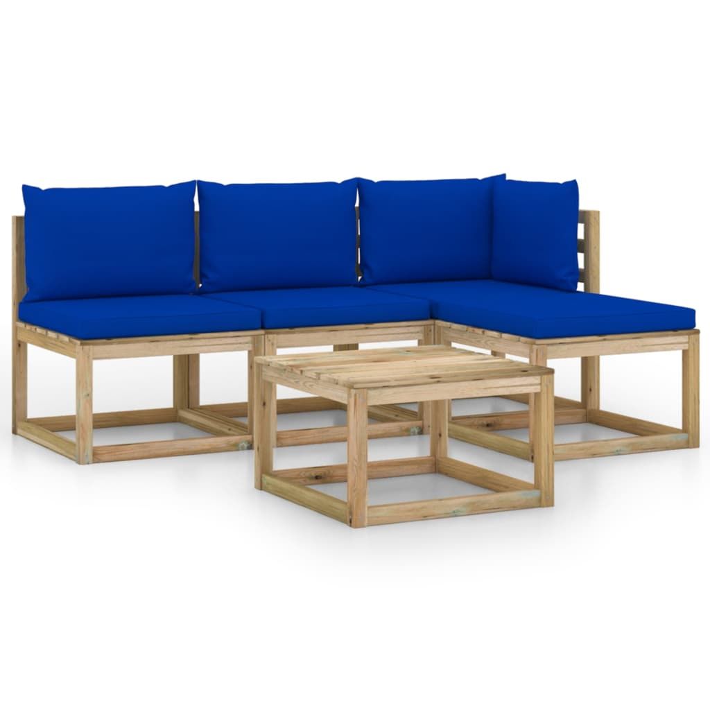 5-cz. zestaw wypoczynkowy do ogrodu, z niebieskimi poduszkami