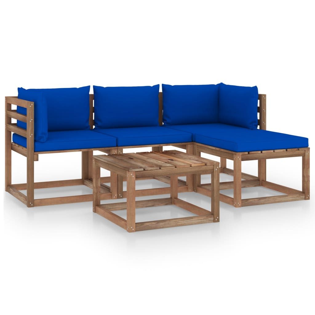 5-cz. zestaw wypoczynkowy do ogrodu z niebieskimi poduszkami