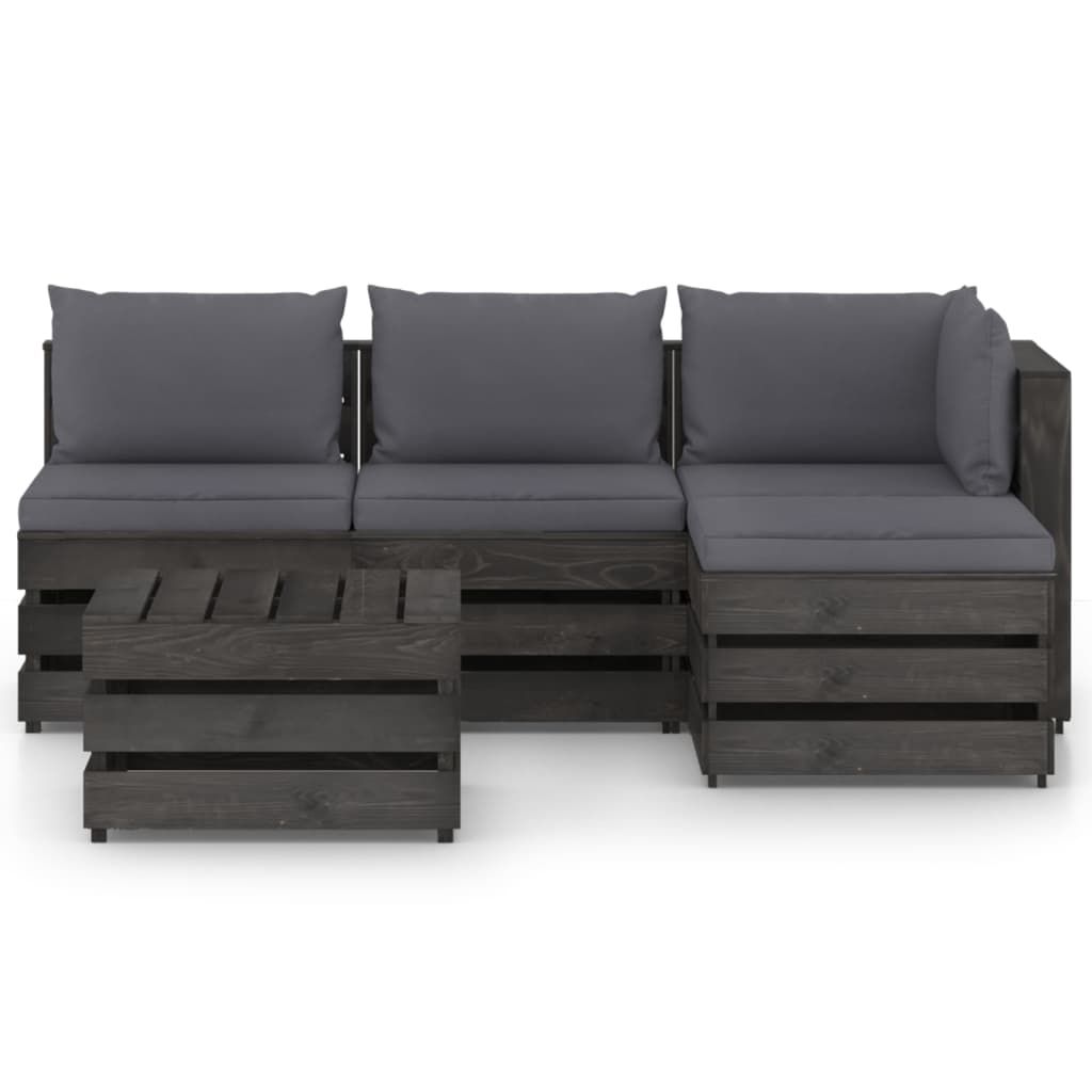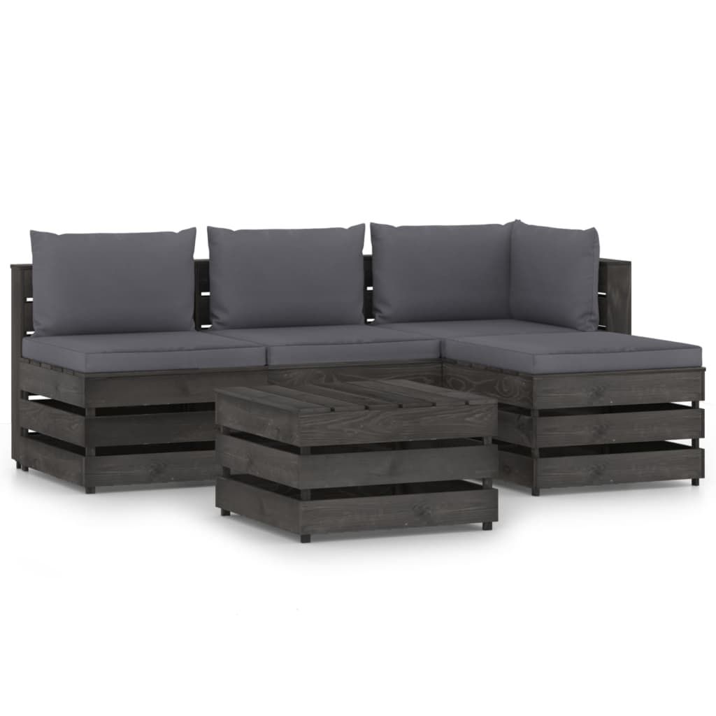 Opis produktu: Ten ogrodowy zestaw wypoczynkowy stanowi znakomity wybór, aby się zrelaksować i nacieszyć dobrą pogodą albo zdrzemnąć lub porozmawiać z rodziną i przyjaciółmi. Za sprawą ponadczasowej konstrukcji z palet wniesie on odrobinę rustykalnego uroku na Twoje patio, do ogrodu lub do salonu. Wykonany z impregnowanego drewna sosnowego zestaw wypoczynkowy z palet jest trwały, odporny na czynniki atmosferyczne i przyjazny dla środowiska. Ma on solidną konstrukcję i nie wymaga zbyt wielu czynności konserwacyjnych. W połączeniu z grubo wyściełanymi poduszkami zapewnia najwyższy komfort. Dodatkowo modułowa konstrukcja umożliwia ustawienie go w dowolnej aranżacji, zgodnie z własnym gustem. Uwaga: aby przedłużyć żywotność mebli ogrodowych, zalecamy zabezpieczenie ich wodoodpornym pokrowcem.