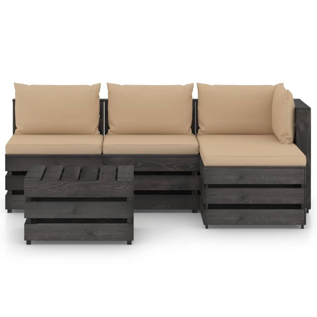 Ten ogrodowy zestaw wypoczynkowy stanowi znakomity wybór, aby się zrelaksować i nacieszyć dobrą pogodą albo zdrzemnąć lub porozmawiać z rodziną i przyjaciółmi. Za sprawą ponadczasowej konstrukcji z palet wniesie on odrobinę rustykalnego uroku na Twoje patio, do ogrodu lub do salonu. Wykonany z impregnowanego drewna sosnowego zestaw wypoczynkowy z palet jest trwały, odporny na czynniki atmosferyczne i przyjazny dla środowiska. Ma on solidną konstrukcję i nie wymaga zbyt wielu czynności konserwacyjnych. W połączeniu z grubo wyściełanymi poduszkami zapewnia najwyższy komfort. Dodatkowo modułowa konstrukcja umożliwia ustawienie go w dowolnej aranżacji, zgodnie z własnym gustem. Uwaga: aby przedłużyć żywotność mebli ogrodowych, zalecamy zabezpieczenie ich wodoodpornym pokrowcem.