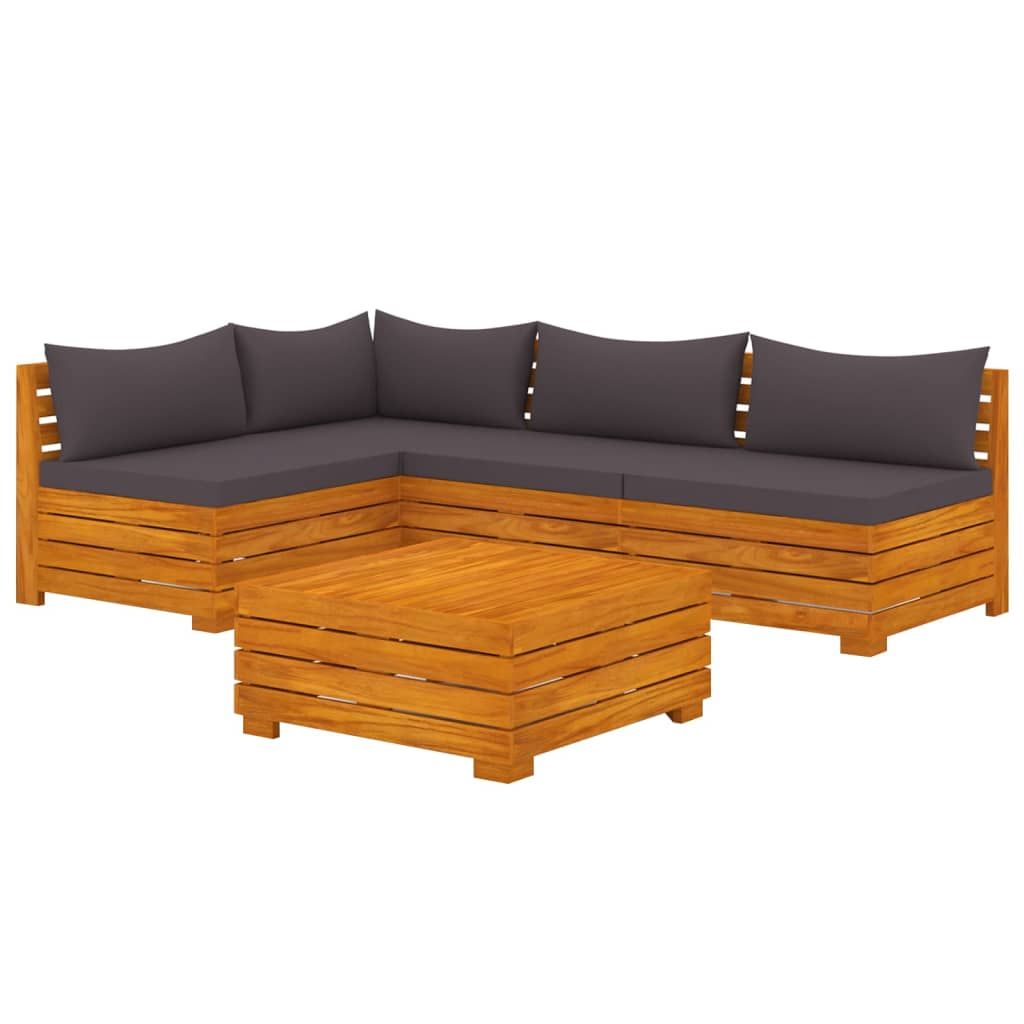5-cz. zestaw wypoczynkowy do ogrodu, z poduszkami, lita akacja
