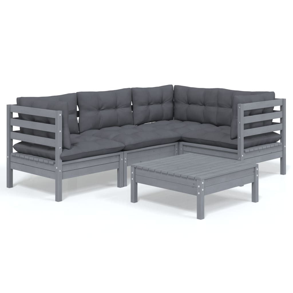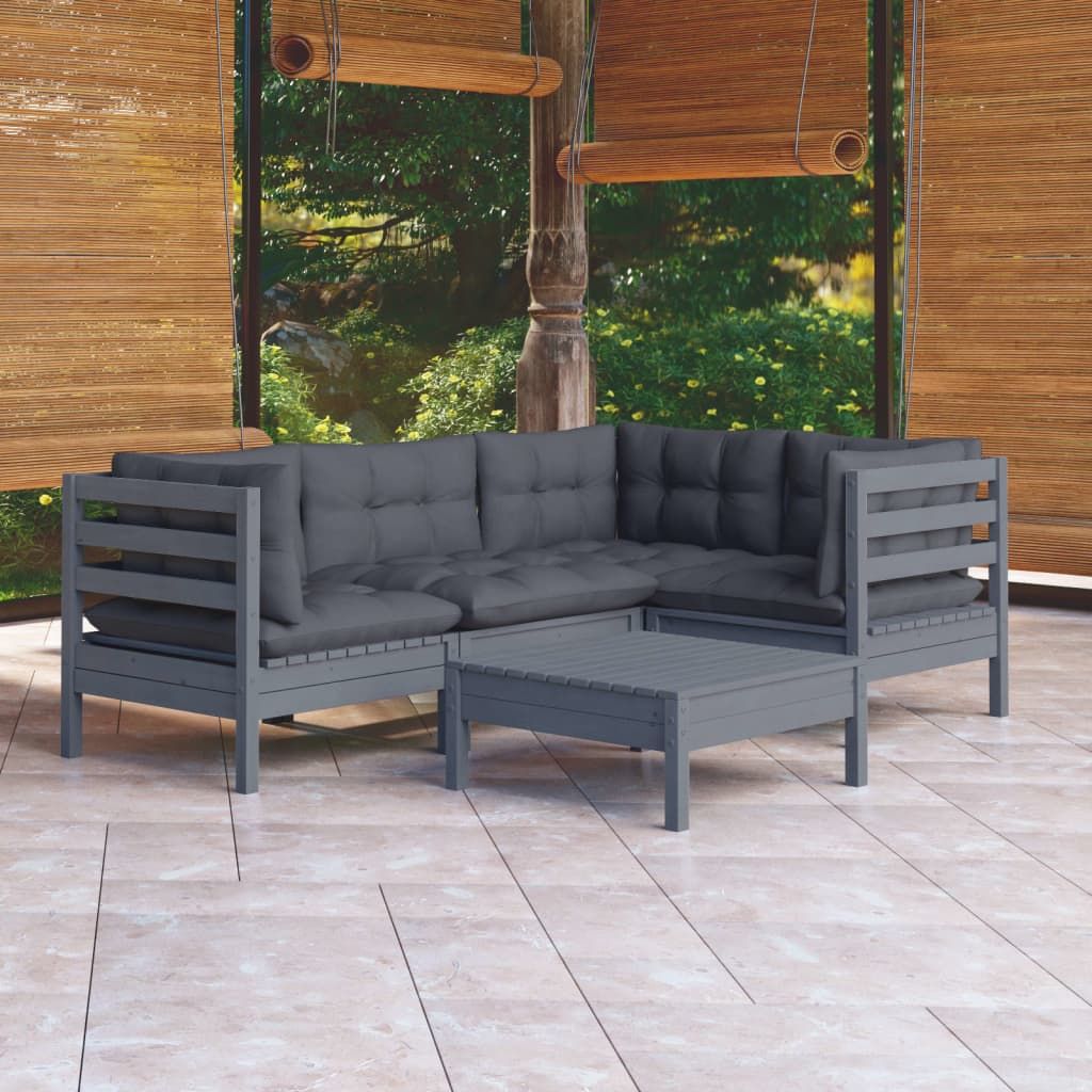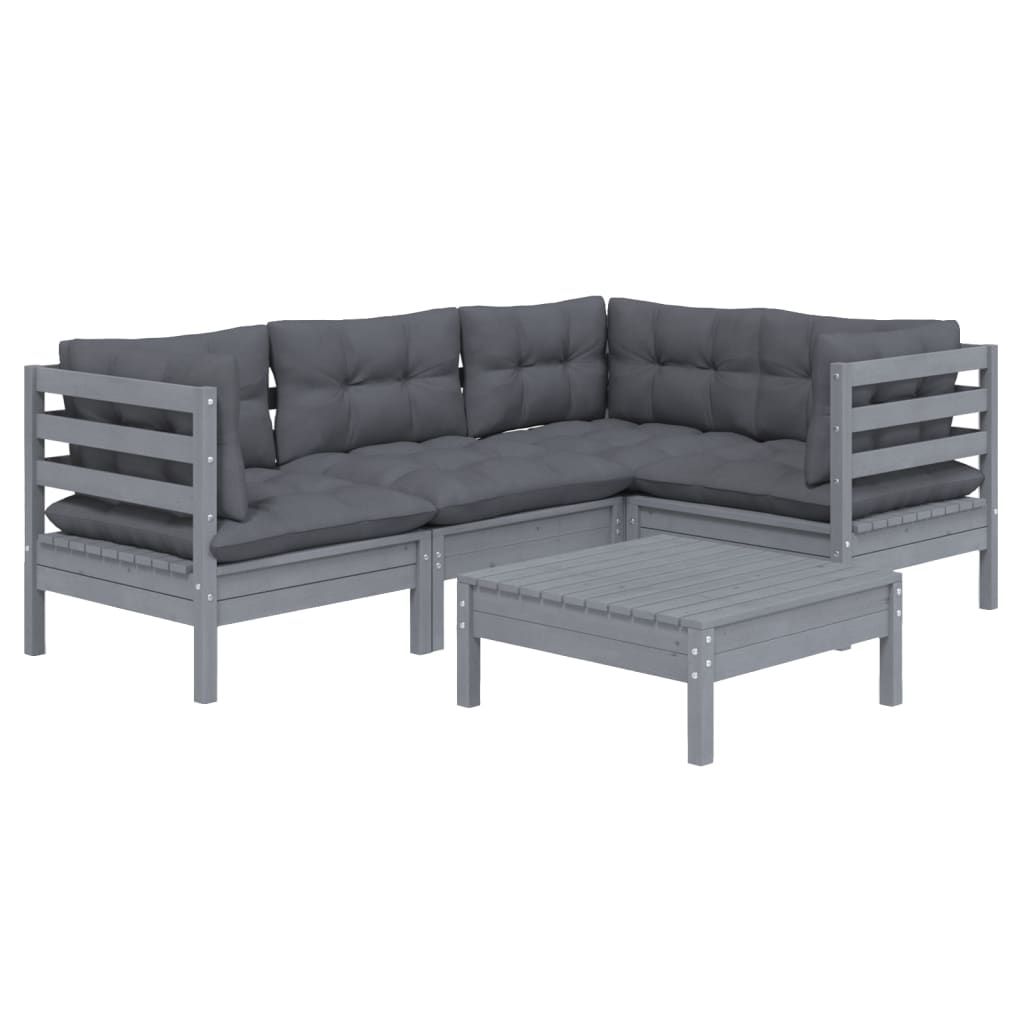 5-cz. zestaw wypoczynkowy do ogrodu, z poduszkami, szara sosna