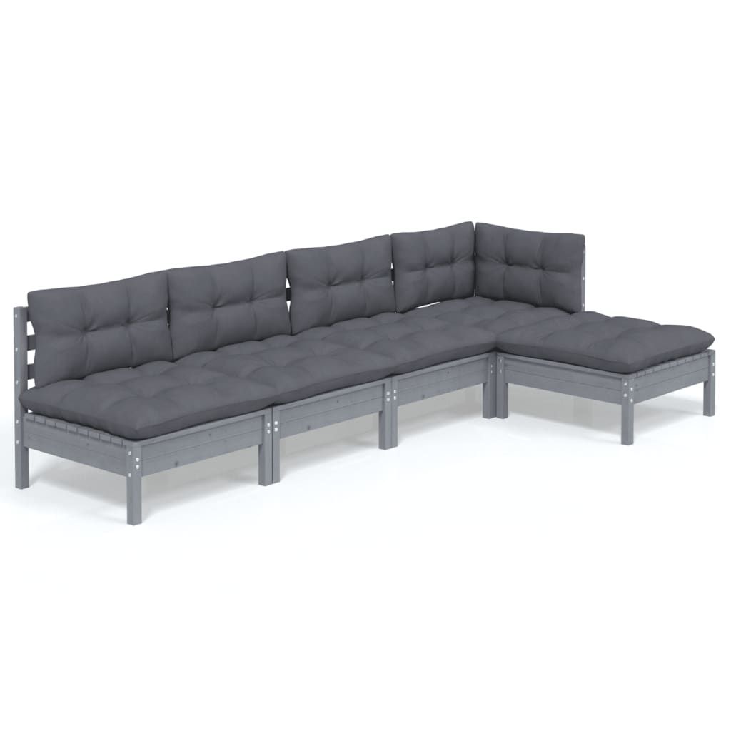 5-cz. zestaw wypoczynkowy do ogrodu, z poduszkami, szara sosna