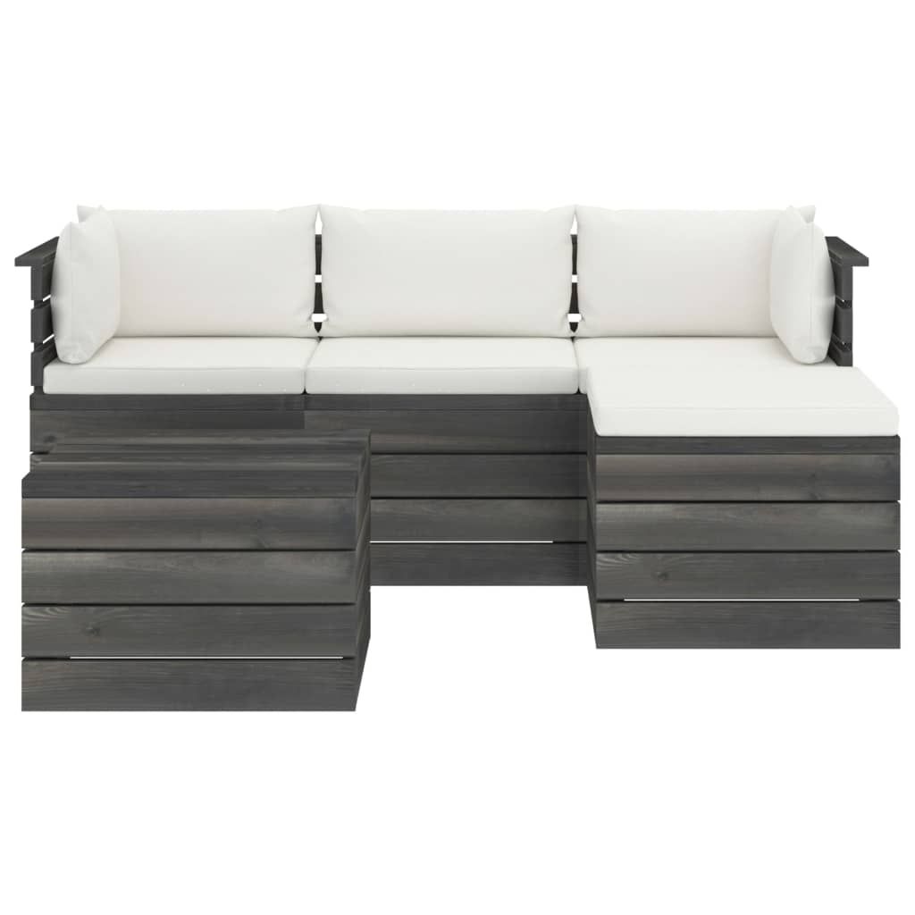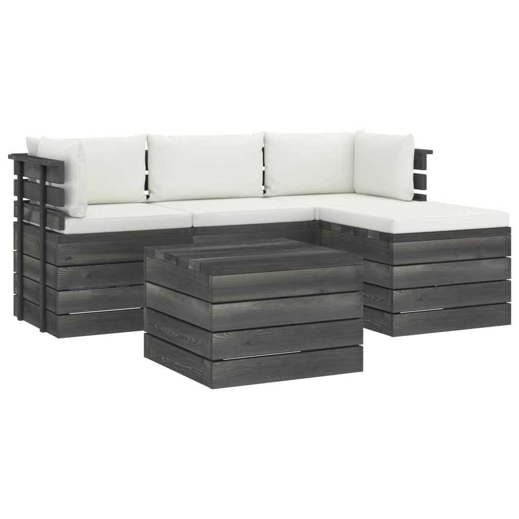 5-cz. zestaw wypoczynkowy z palet, z poduszkami, lita sosna
