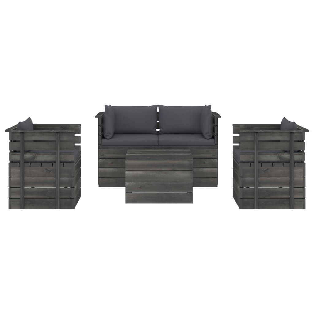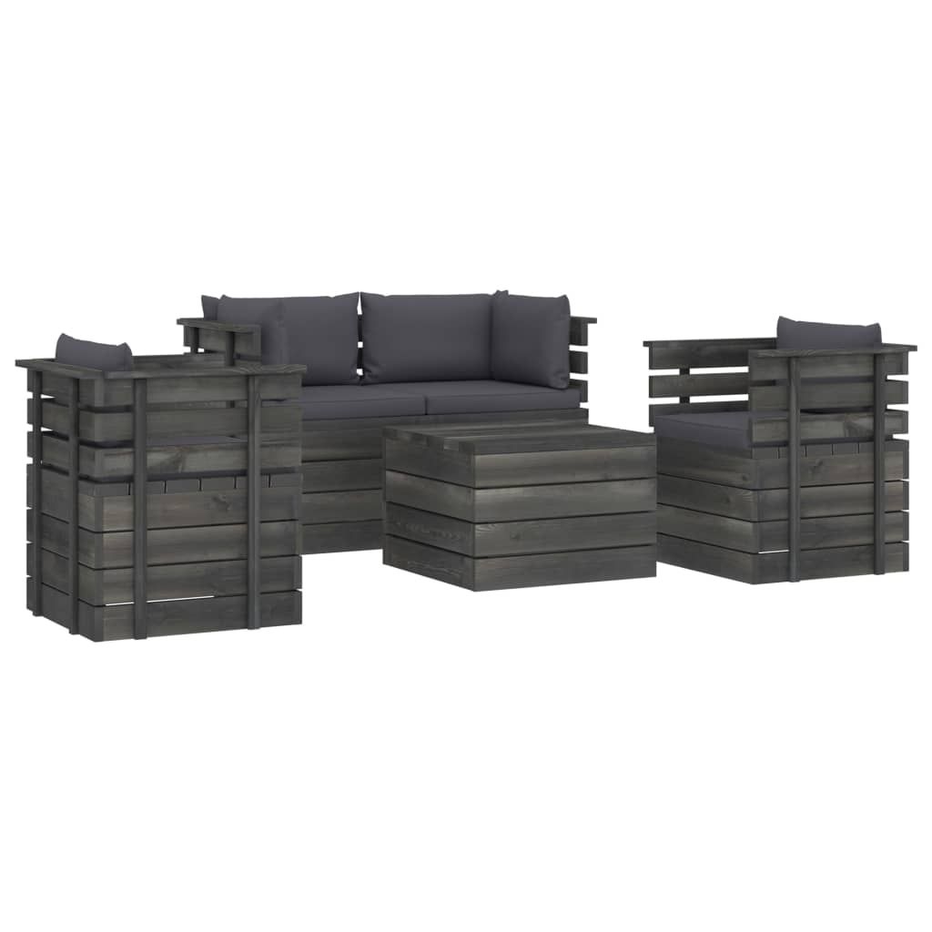 5-cz. zestaw wypoczynkowy z palet, z poduszkami, lita sosna