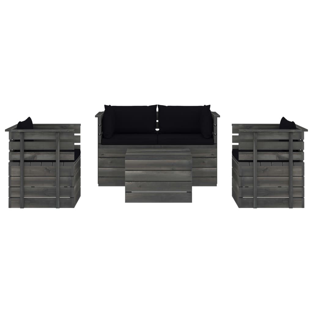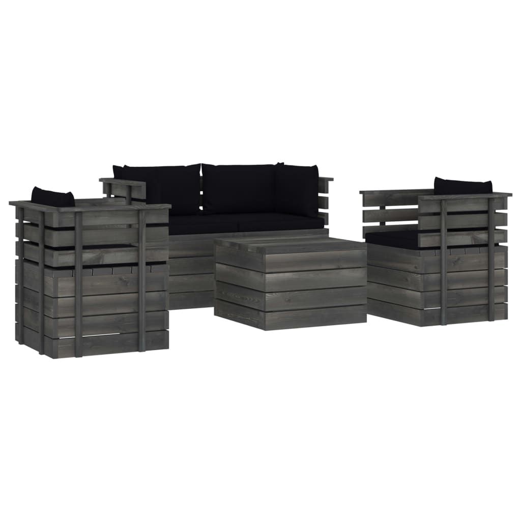 5-cz. zestaw wypoczynkowy z palet, z poduszkami, lita sosna