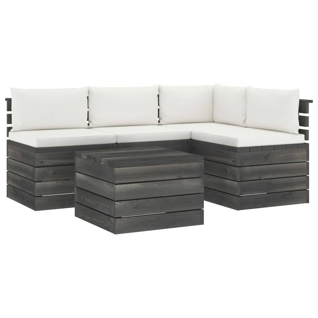 5-cz. zestaw wypoczynkowy z palet, z poduszkami, lita sosna