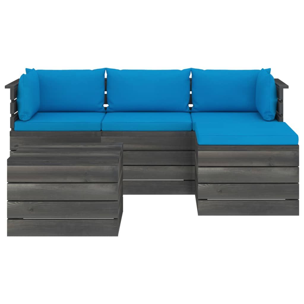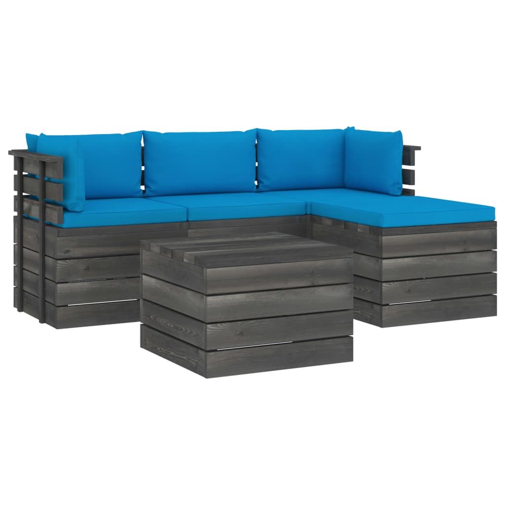 5-cz. zestaw wypoczynkowy z palet, z poduszkami, lita sosna