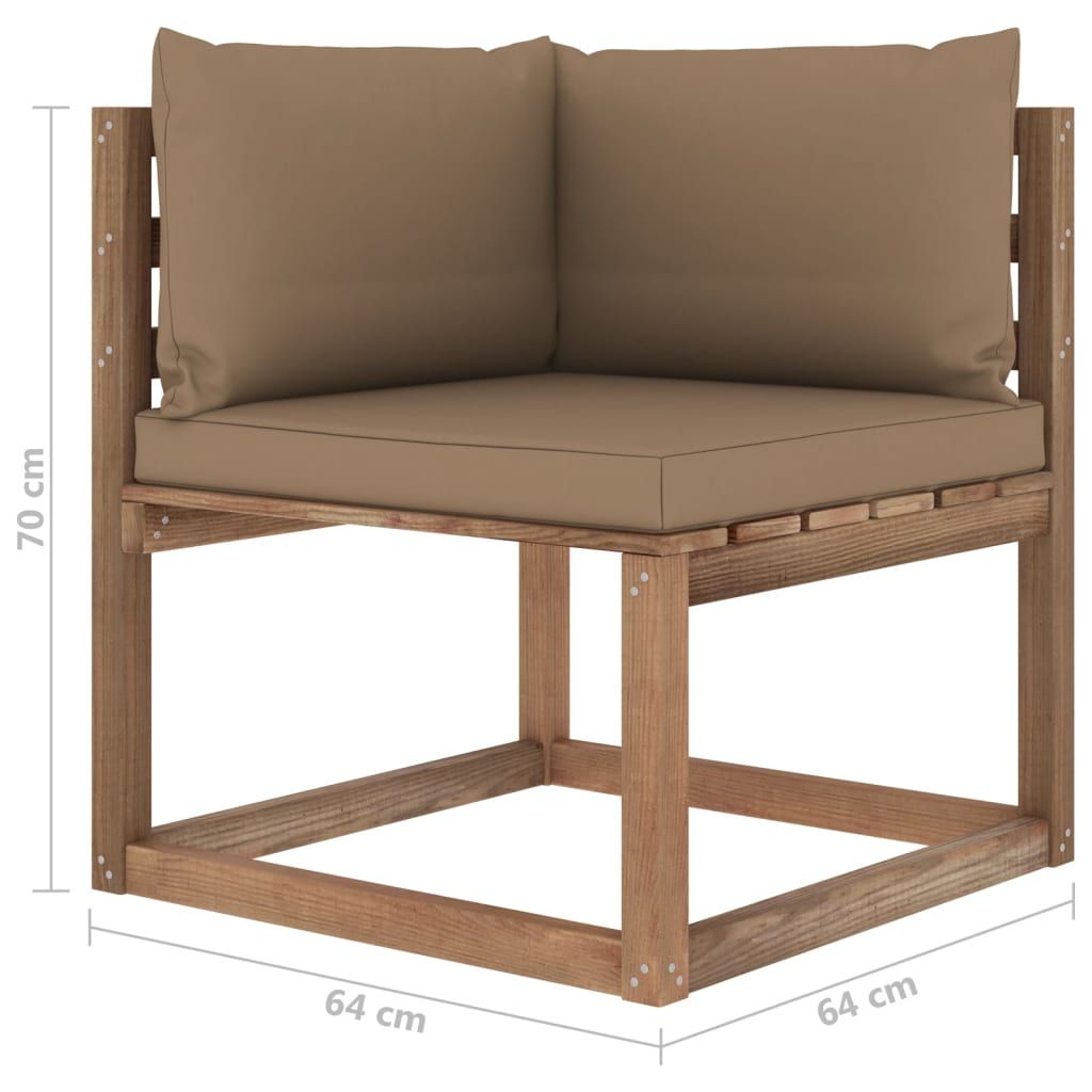 Ten ogrodowy zestaw wypoczynkowy stanowi znakomity wybór, aby się zrelaksować i nacieszyć dobrą pogodą albo zdrzemnąć lub porozmawiać z rodziną i przyjaciółmi. Za sprawą ponadczasowej konstrukcji z palet wniesie on odrobinę rustykalnego uroku na Twoje patio, do ogrodu lub do salonu. Wykonany z impregnowanego drewna sosnowego zestaw wypoczynkowy z palet jest trwały, odporny na czynniki atmosferyczne i przyjazny dla środowiska. Ma on solidną konstrukcję i nie wymaga zbyt wielu czynności konserwacyjnych. W połączeniu z grubo wyściełanymi poduszkami zapewnia najwyższy komfort. Dodatkowo modułowa konstrukcja umożliwia ustawienie go w dowolnej aranżacji, zgodnie z własnym gustem. Uwaga: aby przedłużyć żywotność mebli ogrodowych, zalecamy zabezpieczenie ich wodoodpornym pokrowcem.