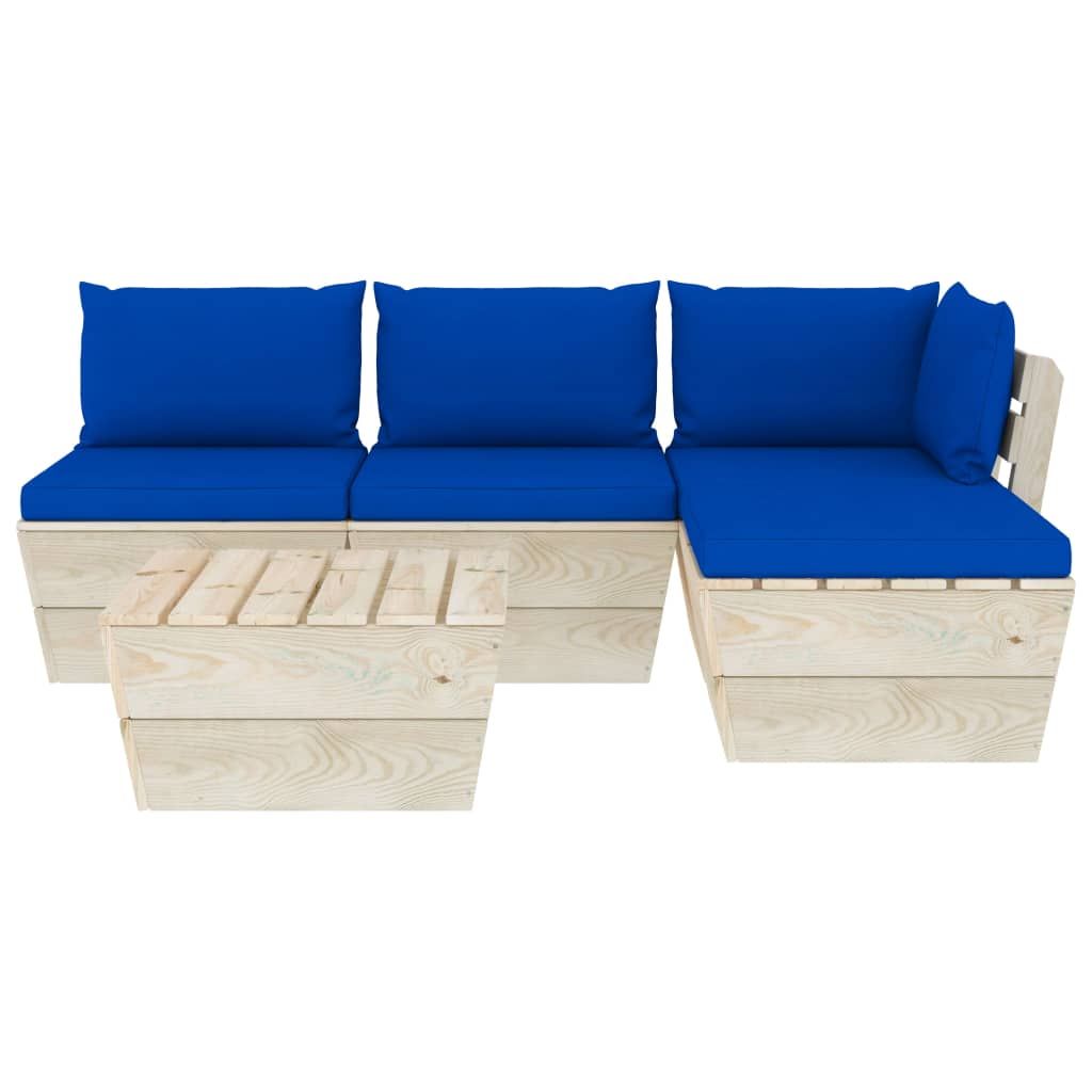 5-cz. zestaw wypoczynkowy z palet, z poduszkami, świerk
