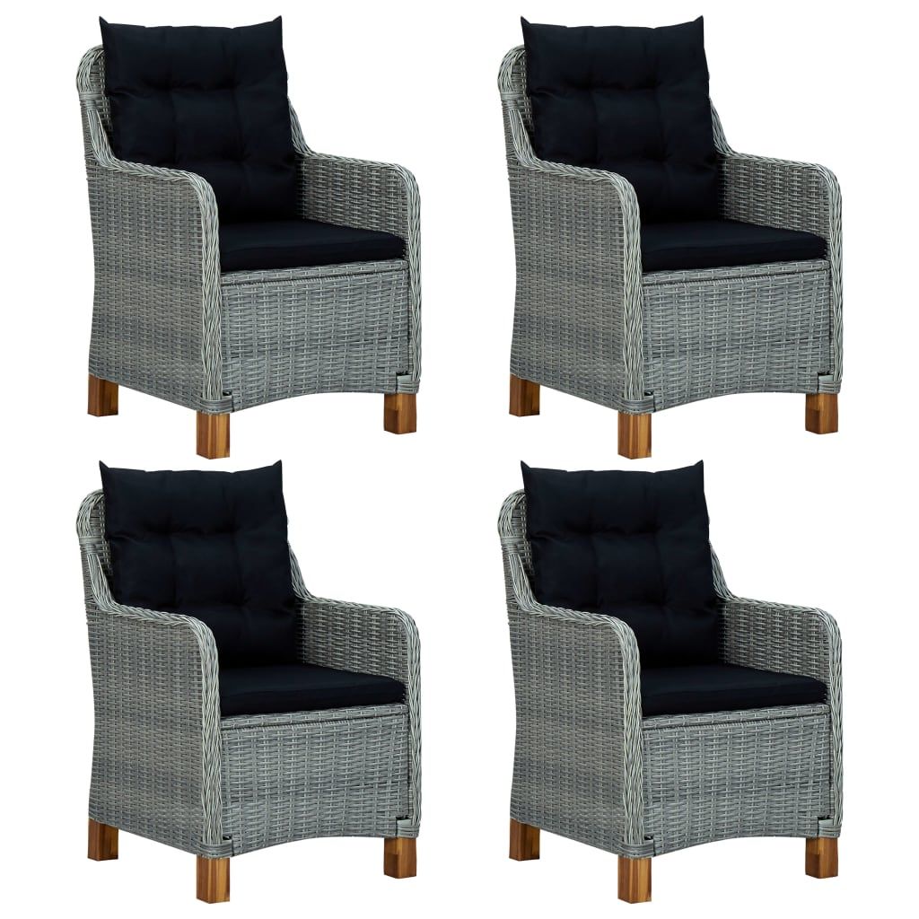 Stwórz fascynującą i spójną estetykę w swojej przestrzeni na świeżym powietrzu dzięki naszemu zestawowi jadalnianemu do ogrodu! Stół jadalniany wykonano z litego drewna akacjowego wykończonego olejem, co sprawia że jest stabilny, trwały i prosty w utrzymaniu. Krzesło ogrodowe ze stalową ramą malowaną proszkowo i pokrytą okrągłym rattanem PE jest wytrzymałe i łatwe do czyszczenia. Grubo wyściełane poduszki oferują większy komfort podczas wypoczynku. Poszewkę na poduszkę wyposażono w zamek błyskawiczny, można ją więc zdejmować i prać. Dodatkowo nogi z litego drewna akacjowego nadają meblowi wytrzymałość i stabilność. Te krzesła ogrodowe można bez trudu przestawiać za sprawą ich lekkiej konstrukcji. Uwaga: zalecamy przykrycie mebli na czas opadów deszczu, śniegu lub mrozu, aby mogły posłużyć dłużej.