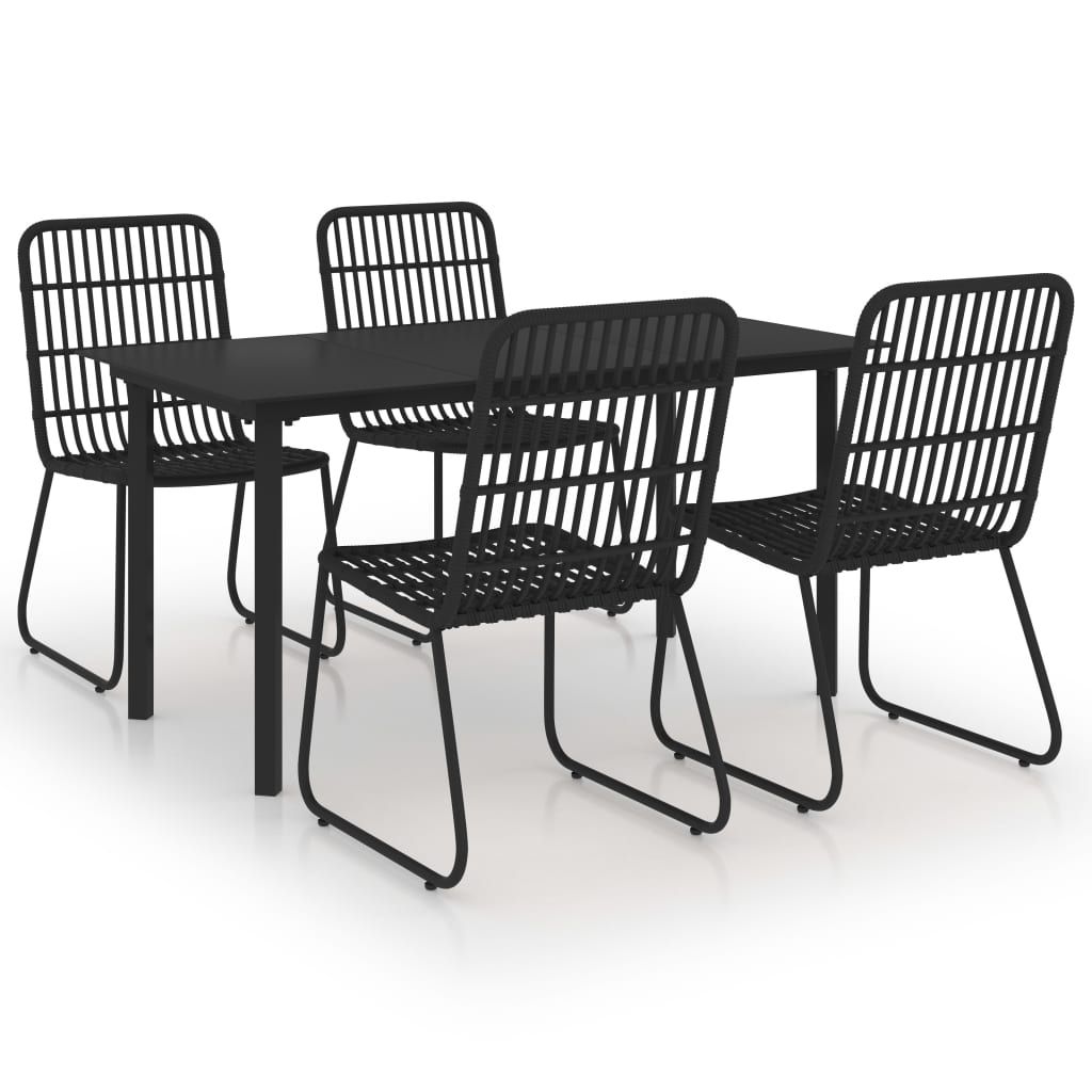 Ten pięknie zaprojektowany zestaw ogrodowy będzie centralnym punktem Twojego ogrodu lub patio! Stalowa rama nadaje meblom stabilność i wytrzymałość. Ponieważ zestaw ten jest również lekki, wszelkie jego elementy można swobodnie przestawiać i są odpowiednie do użytku na zewnątrz. Szklany blat można łatwo wyczyścić przy użyciu wilgotnej ściereczki. Prosta elegancja tego kompletu jadalnianego sprawi, że codzienne posiłki staną się wyjątkowe. Krzesła zawierają siedziska i oparcia z rattanu PE, który jest odporny na czynniki pogodowe.