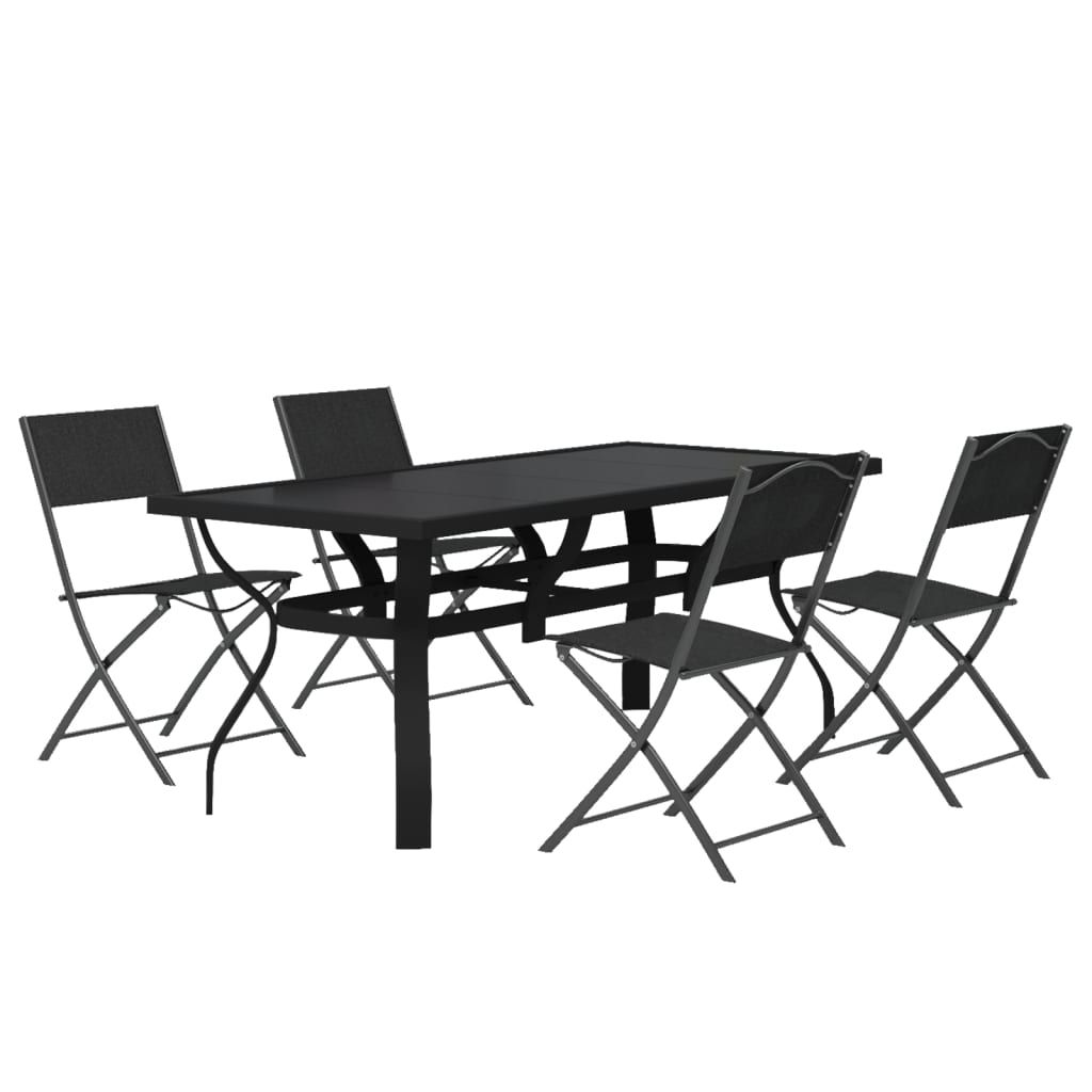 Ten elegancki zestaw ogrodowy to doskonały wybór do spożywania posiłków lub wypoczynku na patio albo w ogrodzie. Mocna rama: dzięki ramom z malowanej proszkowo stali meble są trwałe i stabilne.Trwały materiał: dzięki odpornej na wodę i oddychającej tkaninie textilene produkt ten jest wytrzymały, łatwy do utrzymania i odpowiedni do codziennego użytku na zewnątrz.Składana konstrukcja: krzesła stołowe można złożyć, gdy nie są używane, aby zaoszczędzić miejsce.Stylowe nogi: stylowo wykonane nogi tego stołu na patio prezentują zakrzywiony, dynamiczny kształt, zapewniając mu jednocześnie piękny wygląd i solidną konstrukcję. Tworzą tym samym zachwycającą ozdobę do Twojej przestrzeni na zewnątrz.Praktyczny i łatwy w czyszczeniu blat: gładki, szklany blat można z łatwością wyczyścić wilgotną ściereczką. Doskonale nadaje się do postawienia na nim posiłków, napojów i elementów dekoracyjnych. Uwaga:Aby przedłużyć żywotność mebli ogrodowych, zalecamy zabezpieczenie ich wodoodpornym pokrowcem.