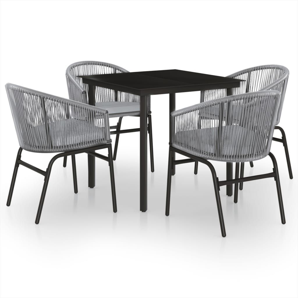 Opis produktu: Stwórz fascynującą i spójną estetykę w swojej przestrzeni na świeżym powietrzu dzięki naszemu zestawowi jadalnianemu do ogrodu! Ten ogrodowy zestaw mebli ma ramy ze stali malowanej proszkowo, dzięki czemu jest solidny i stabilny do codziennego użytku na zewnątrz. Gładki, szklany blat jest łatwy do czyszczenia wilgotną ściereczką i doskonale nadaje się do postawienia na nim posiłków, napojów i przedmiotów dekoracyjnych. Krzesła ogrodowe wykonano z rattanu PVC, dzięki czemu są trwałe i odporne na niekorzystne warunki pogodowe i promienie UV. Poza tym każde krzesło zawiera zdejmowaną, grubo wypełnioną poduszkę, zapewniając większy komfort w czasie wypoczynku. Uwaga: aby przedłużyć żywotność mebli ogrodowych, zalecamy zabezpieczenie ich wodoodpornym pokrowcem.