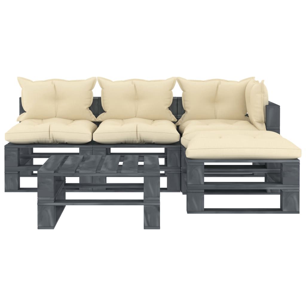 5-częściowy zestaw mebli ogrodowych z palet, kremowe poduszki